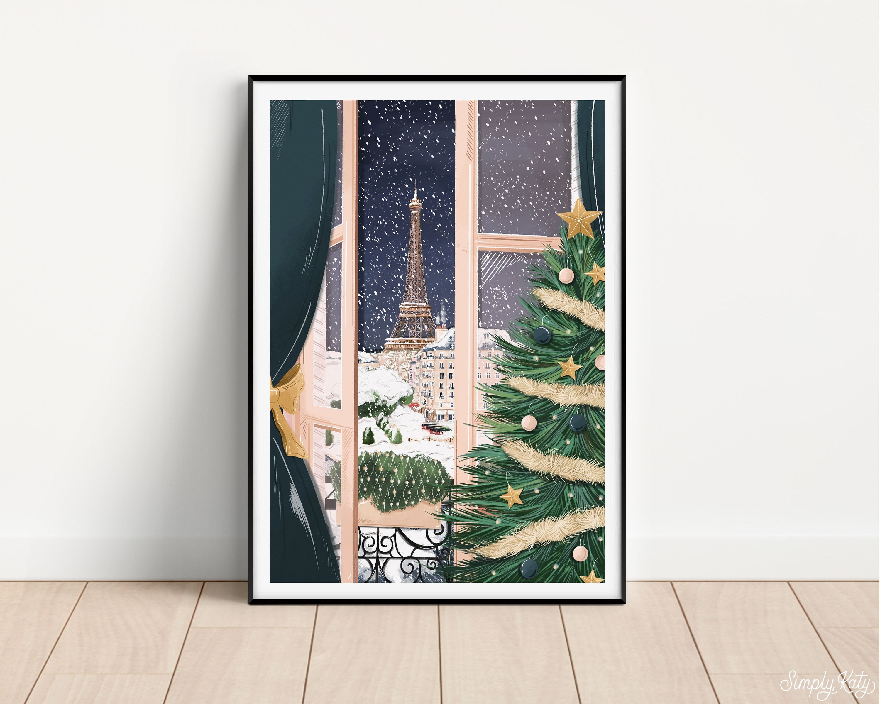 'Paris at Christmas' illustrated by Simply, Katy. Important note: The frame is not included. PRINT O...