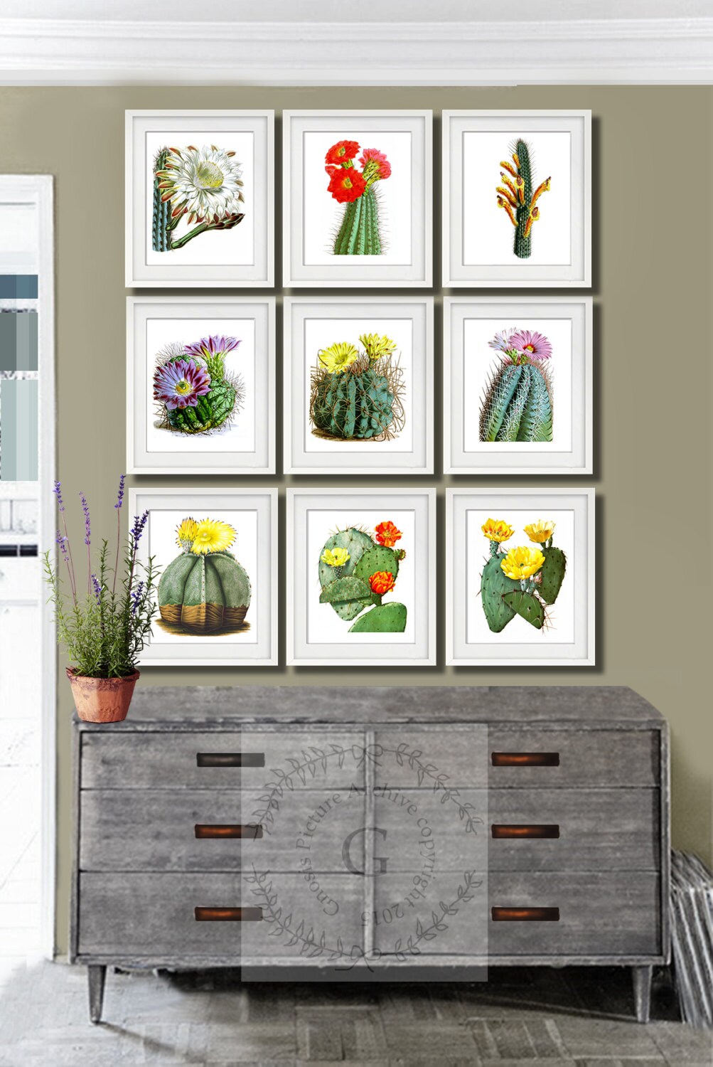 Cactus Prints, Cacti Set of 9 Wall Art Cactus, Southwestern Decor D...
