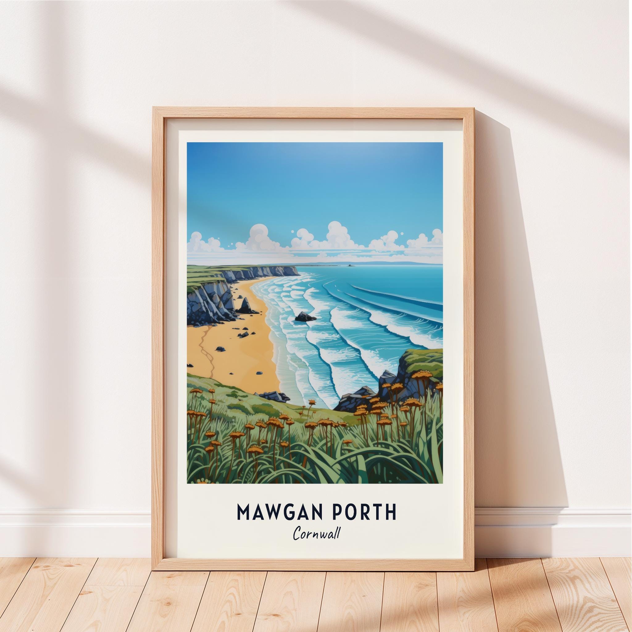 Mawgan Porth Travel Poster Mawgan Porth Cornwall Wall Art Cornwall ...