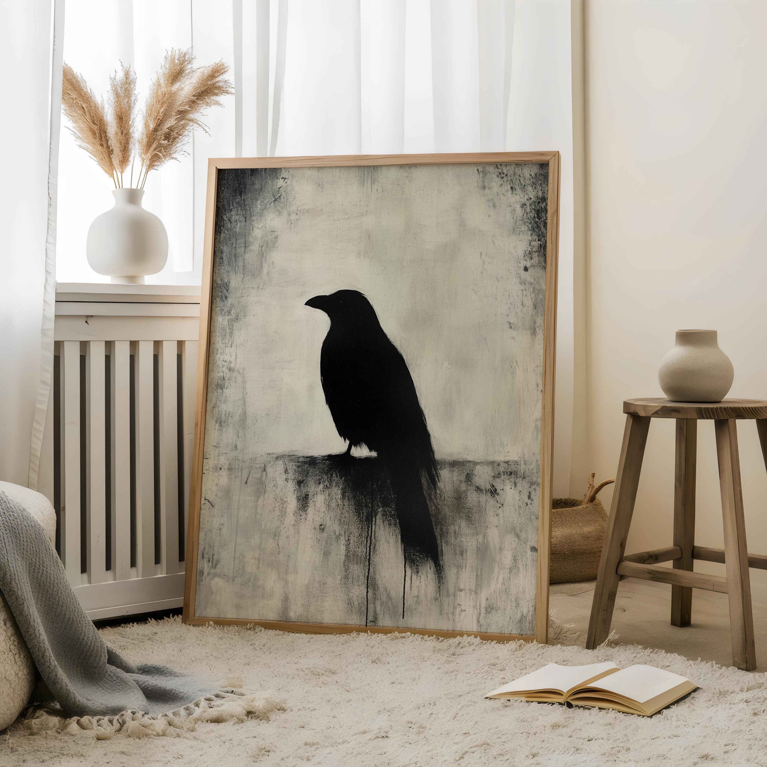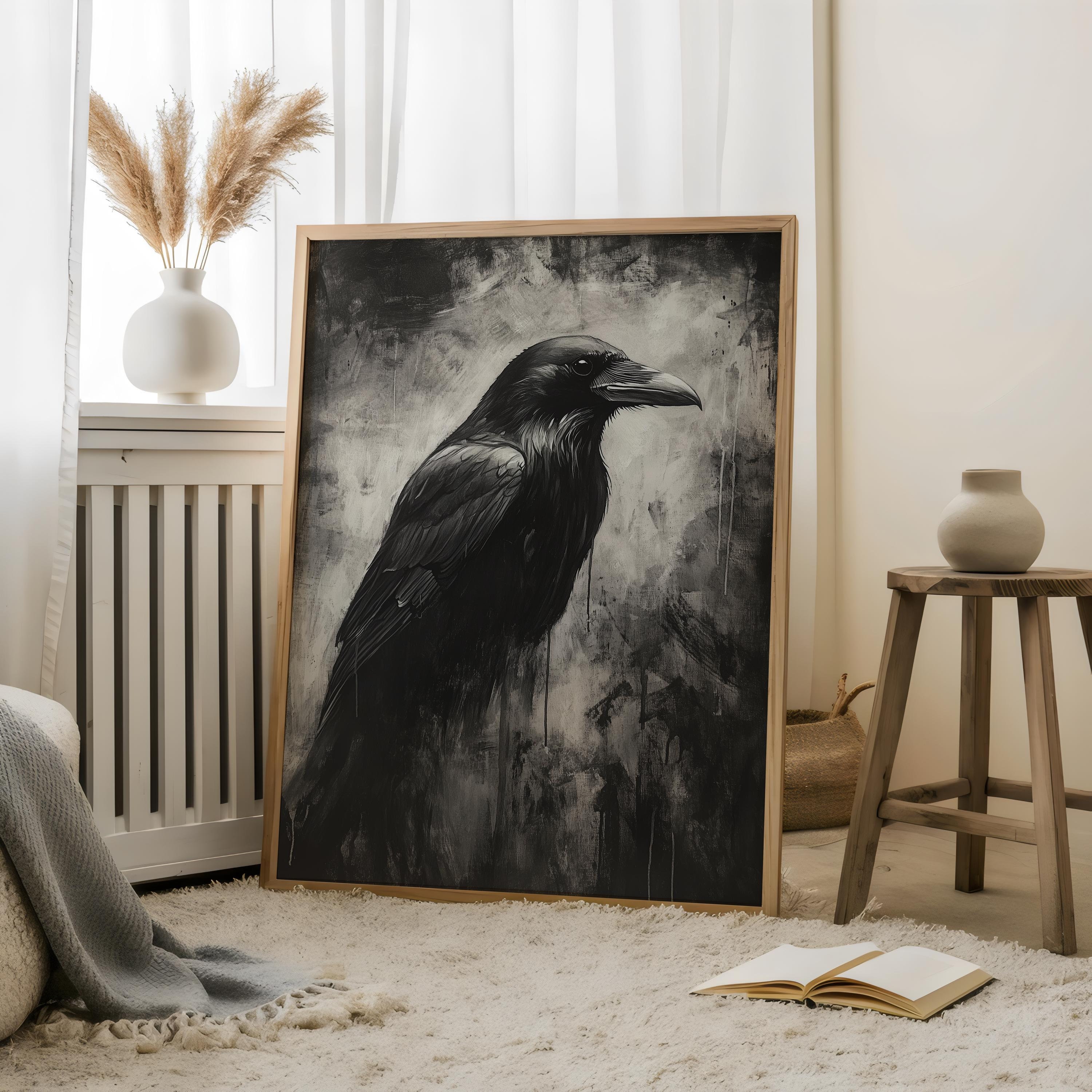 Rustic Oil Paint Raven-Gothic Crow,Animal Portrait,Moody Raven Vint...