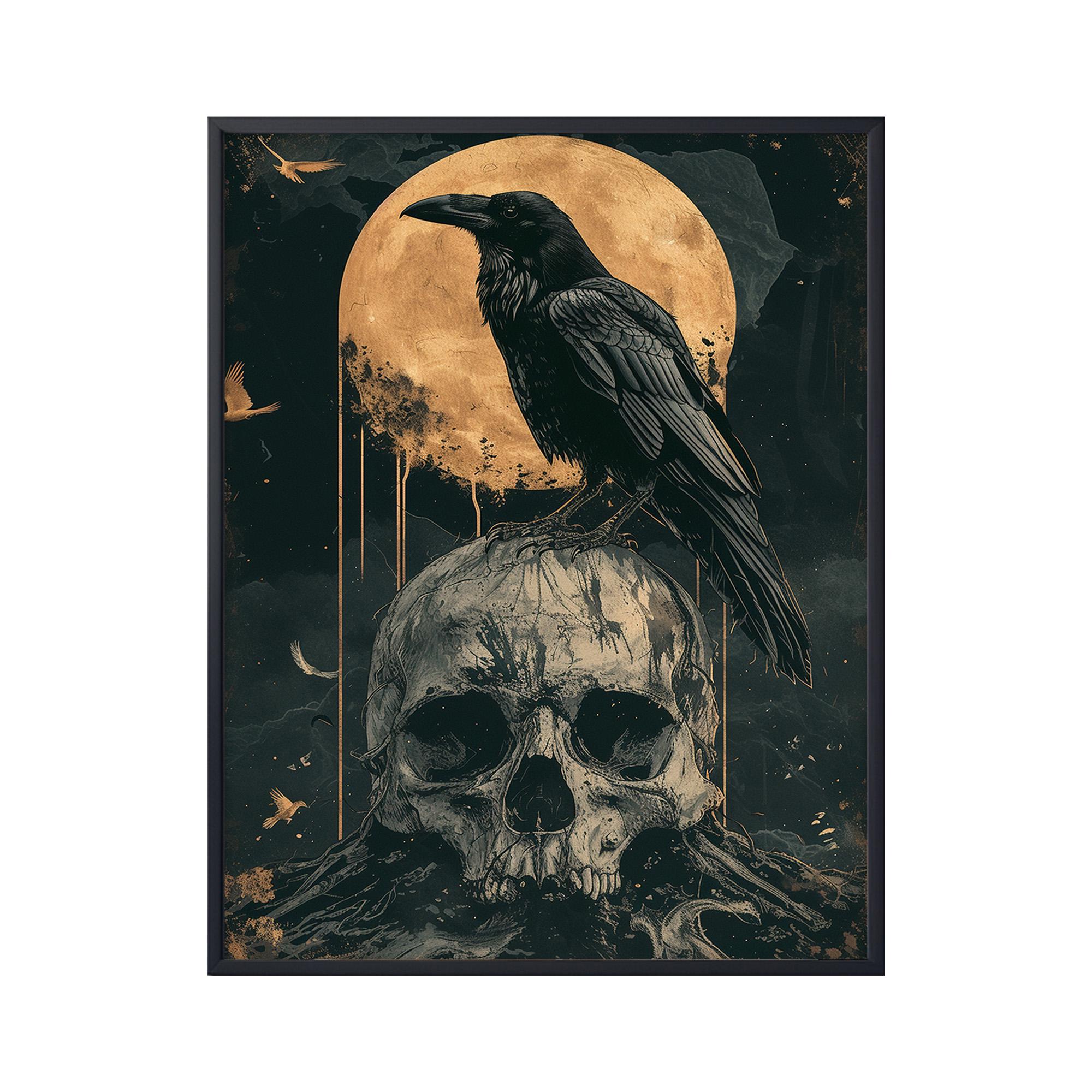 Raven on The Skull Wall Art, Halloween Raven Canvas, Raven Poster, ...