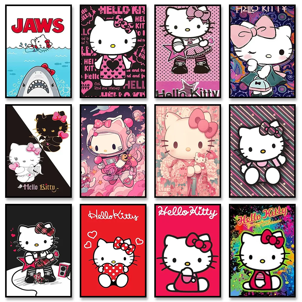 MINISO Poster Hello Kitty Canvas Wall Art Print Mural Cartoon Decorative Painting Home Decor Birthda...