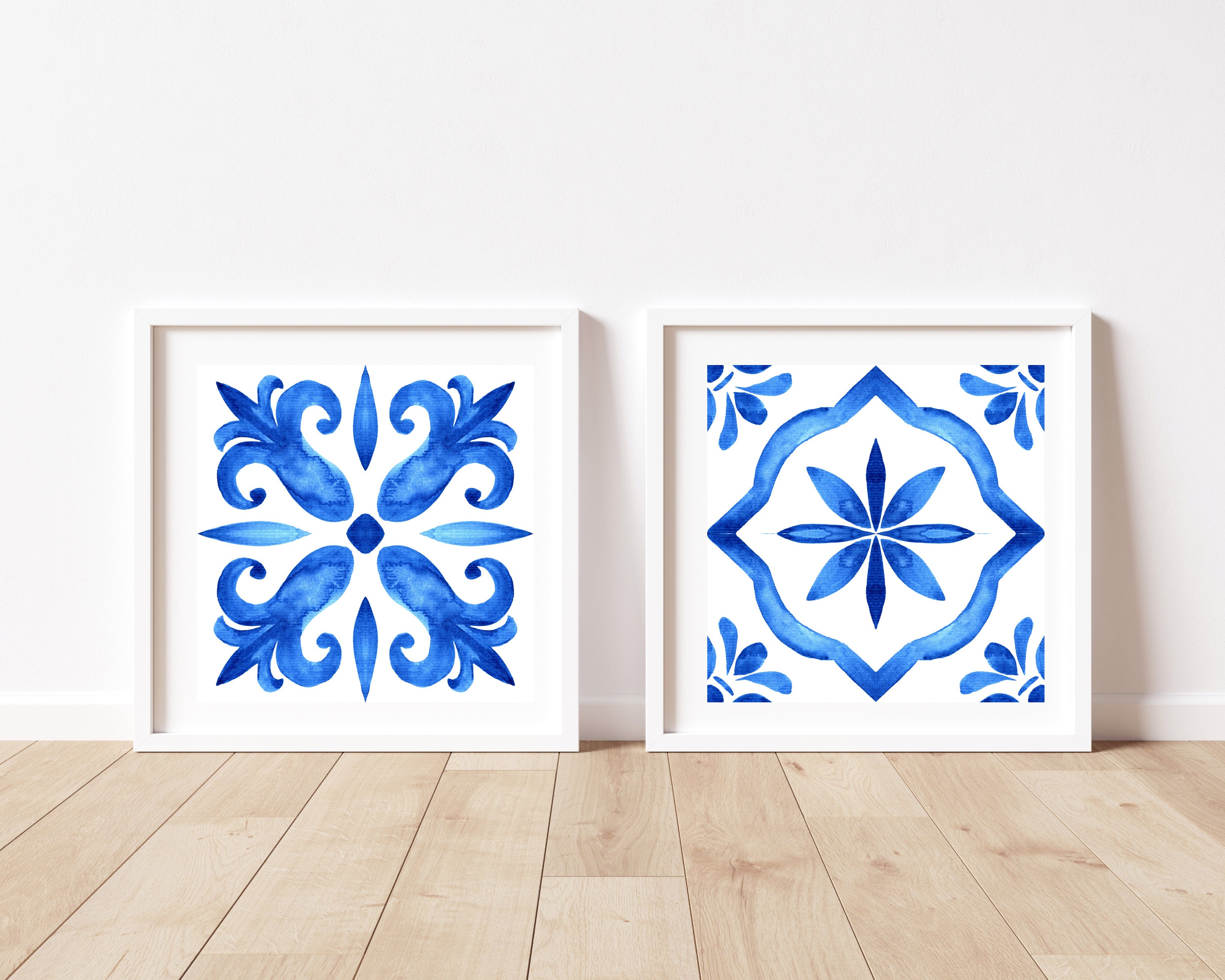 Mediterranean Tiles Print - Set of 4 - Tiles Wall Art - Watercolor ...