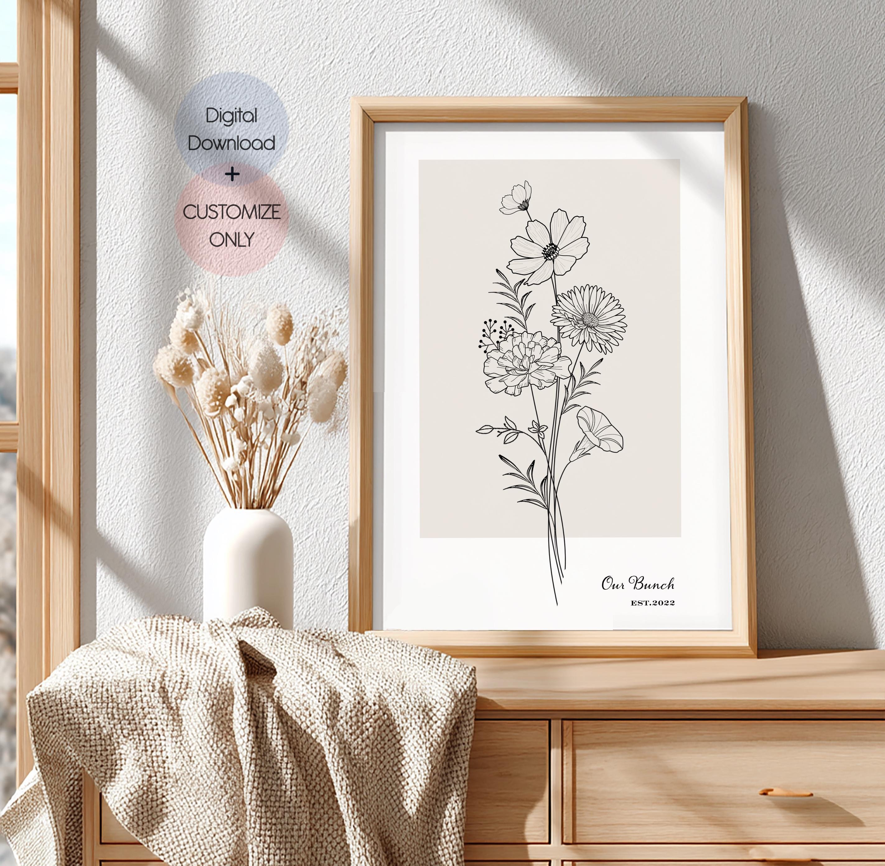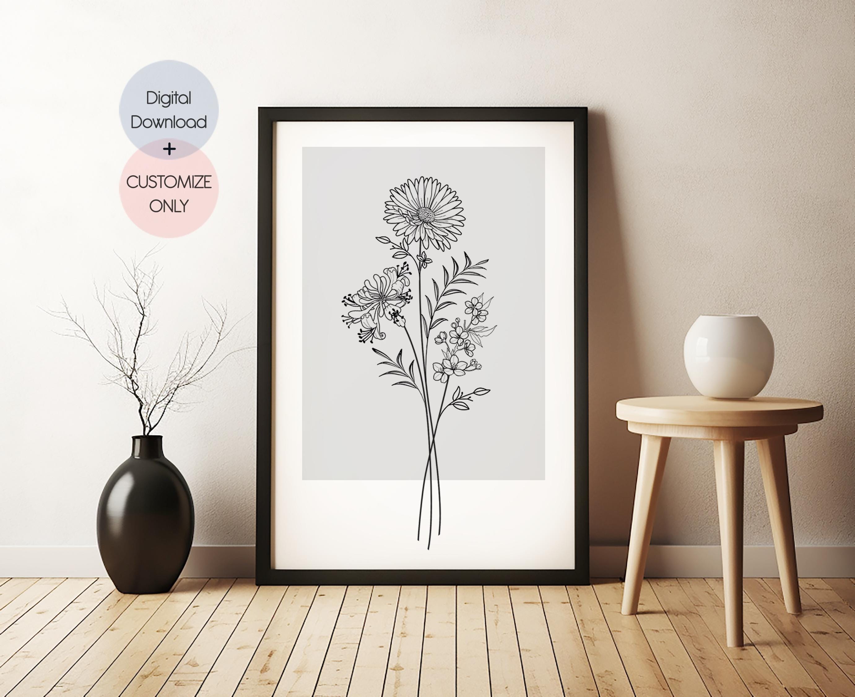 Custom Birth Month Flower Bouquet, Minimalist Line Art , Personaliz...