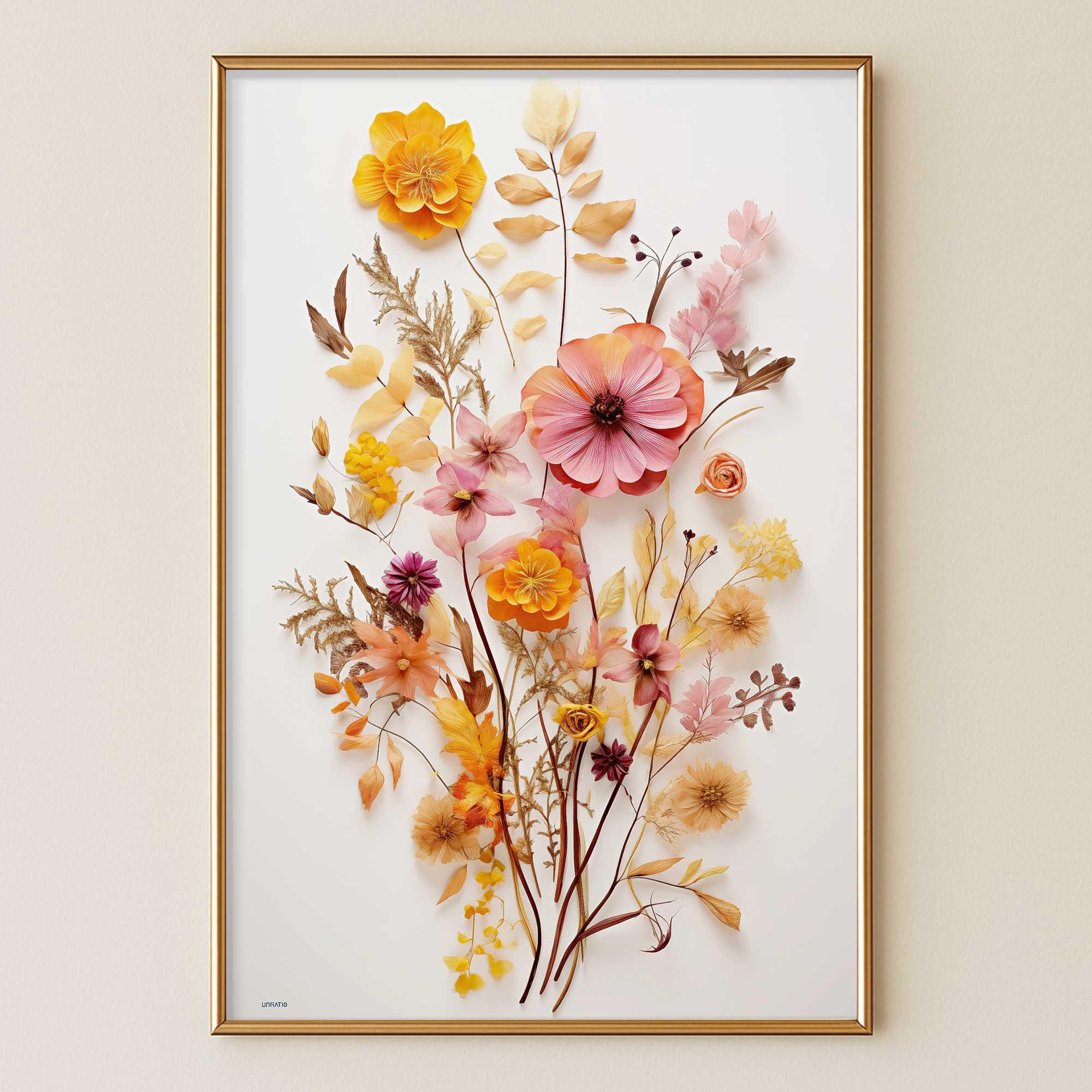 Dried flower pressed bouquet print, Printable wildflower artwork, D...