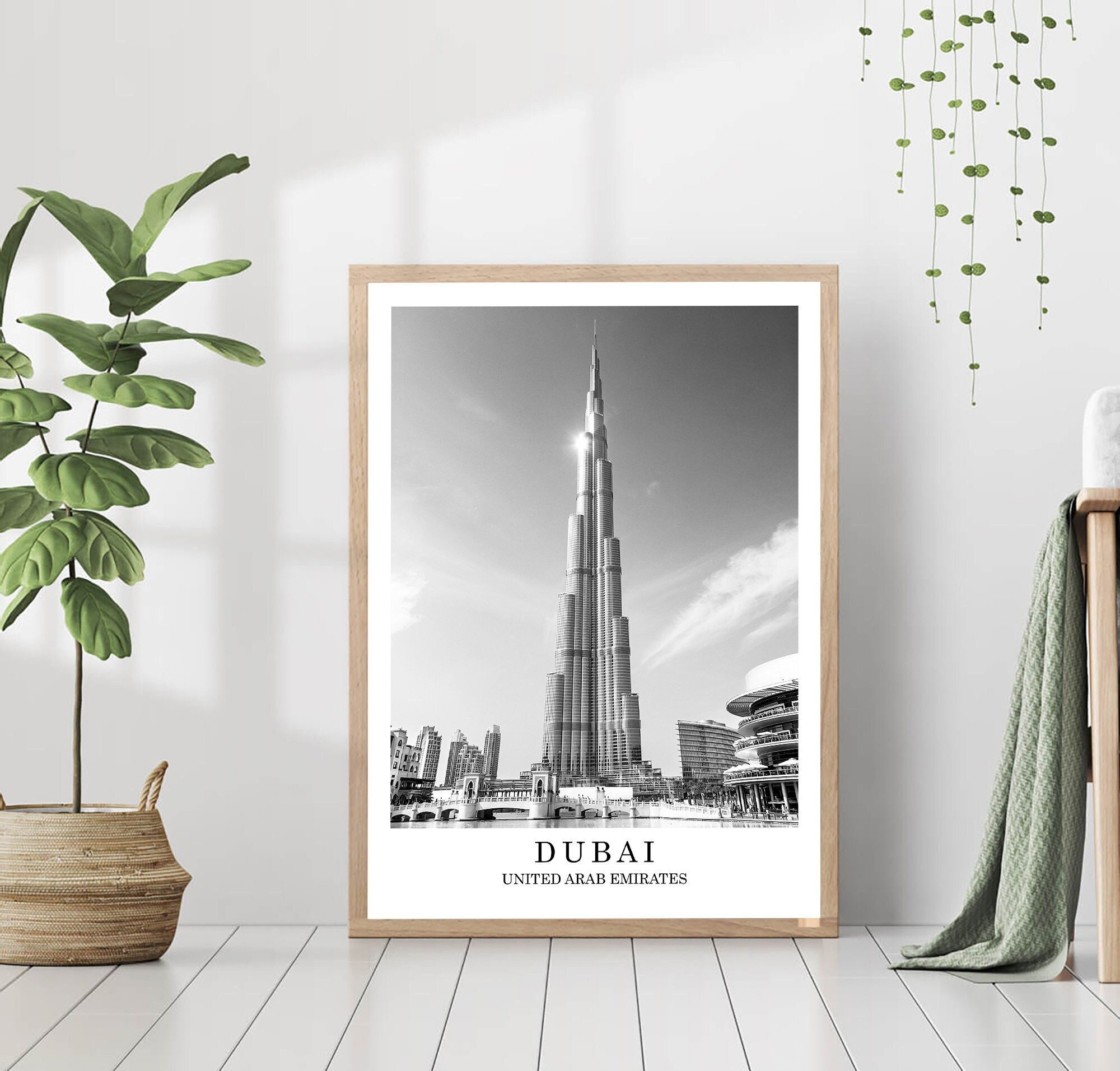 Dubai Burj Khalifa Travel Print Dubai Black and White Photo Dubai C...