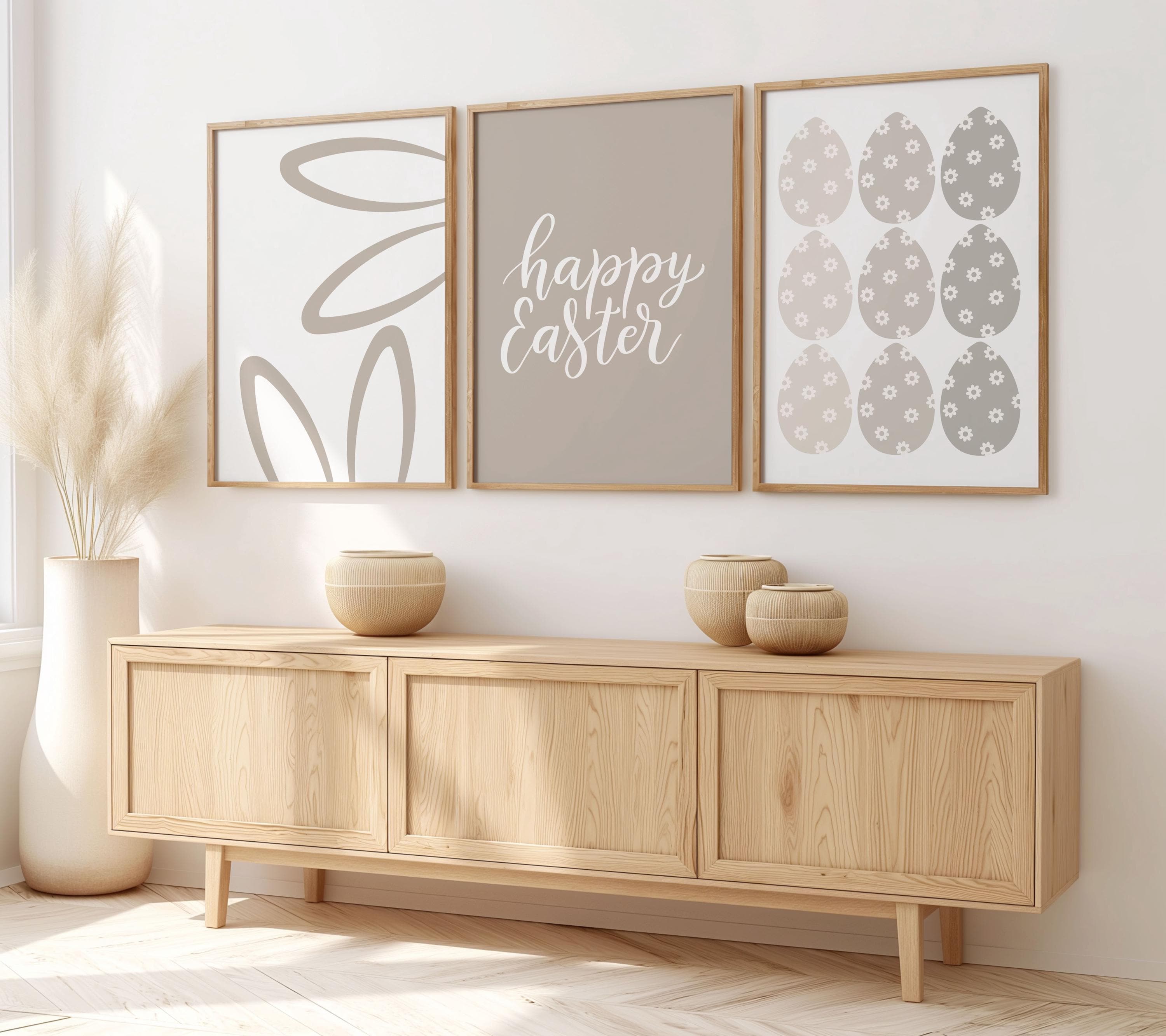 "Refresh your space with this set of 3 neutral Easter prints, perfect for adding a touch of min...