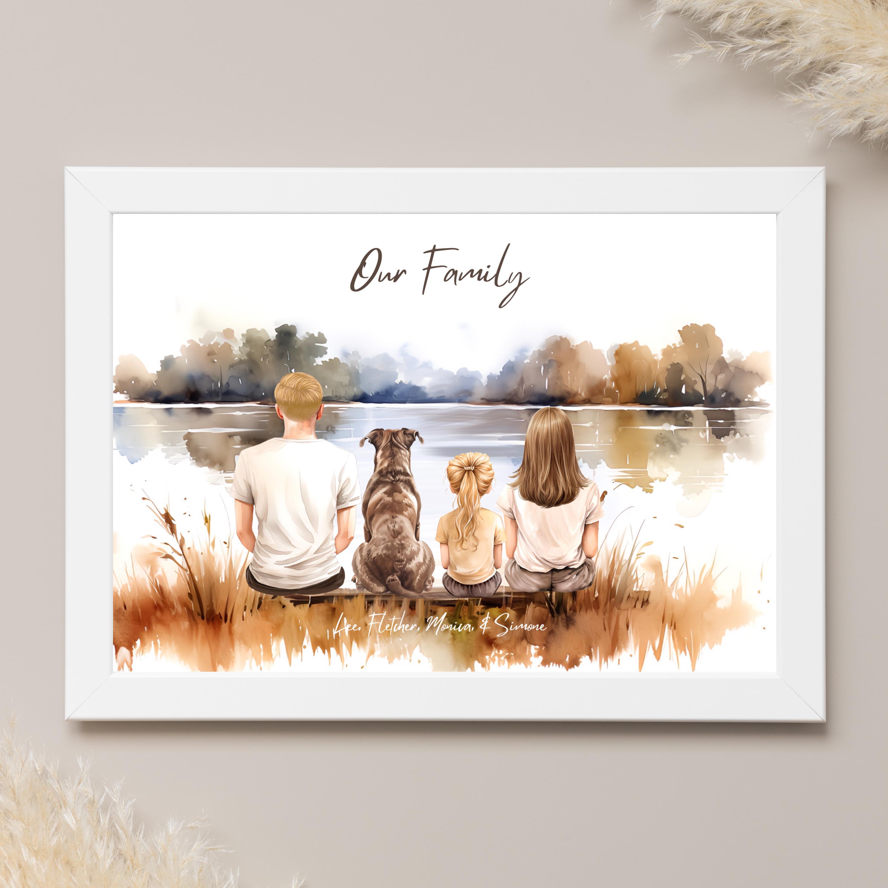 Family print, personalised family print with dog, canvas family dog...
