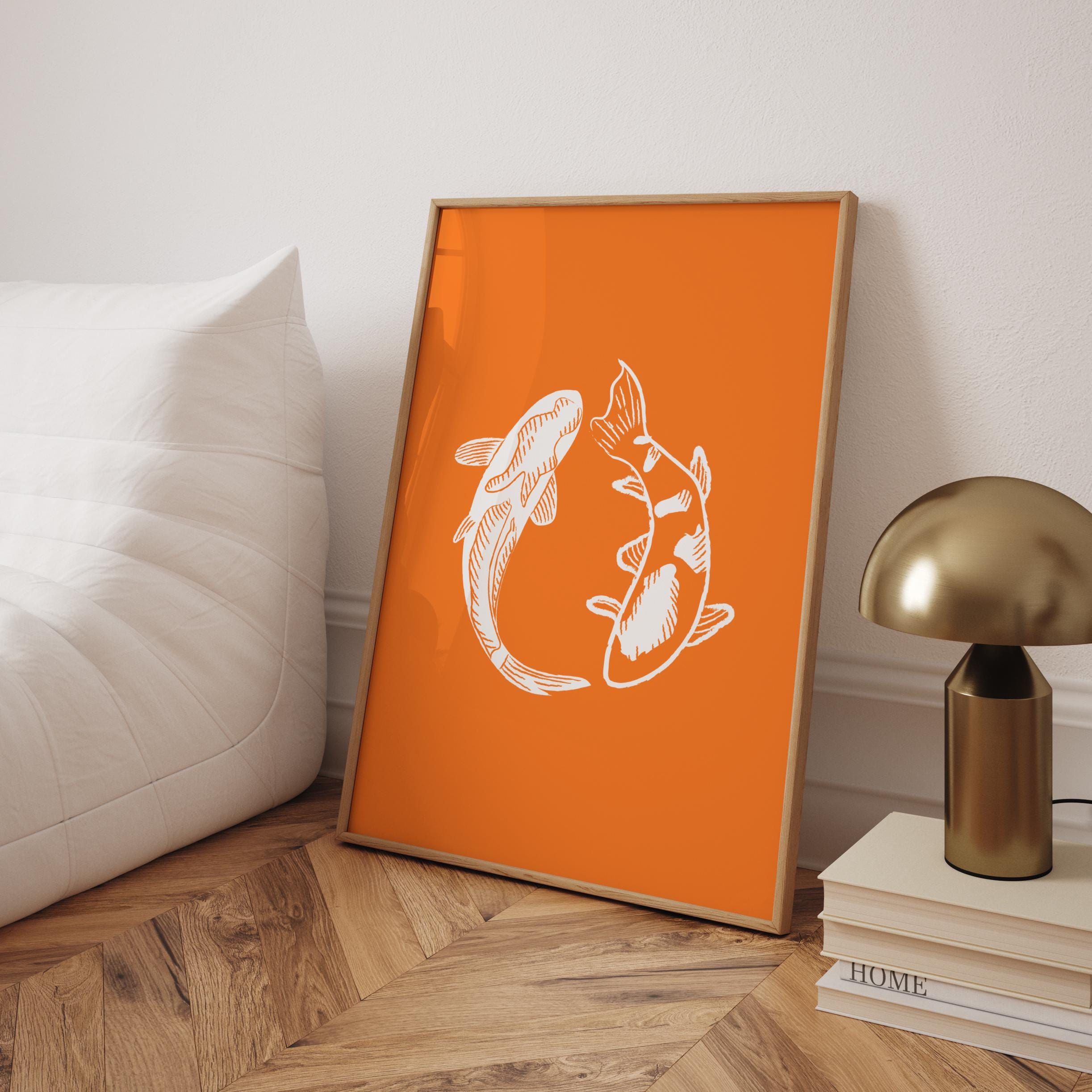 "Trendy Koi Fish Wall Art Minimalist Office Decor Eclectic Orange Wall Art Vintage Koi Poster C...