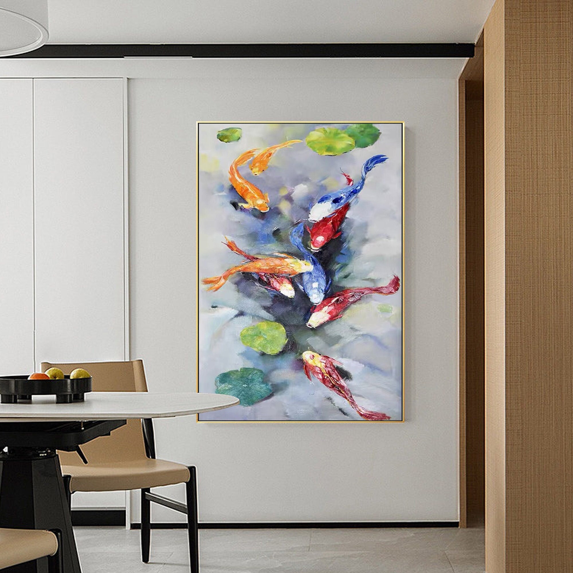 "Koi Fish Painting On Canvas Japanese fish art Feng shui décor palette knife painting on...