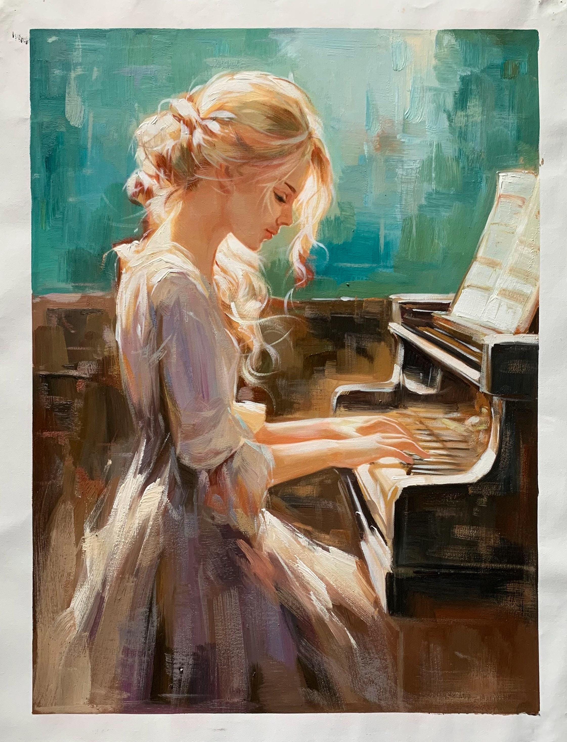 The Girl Playing On The Piano 60 x 80 cm A Woman Playing A Piano, M...