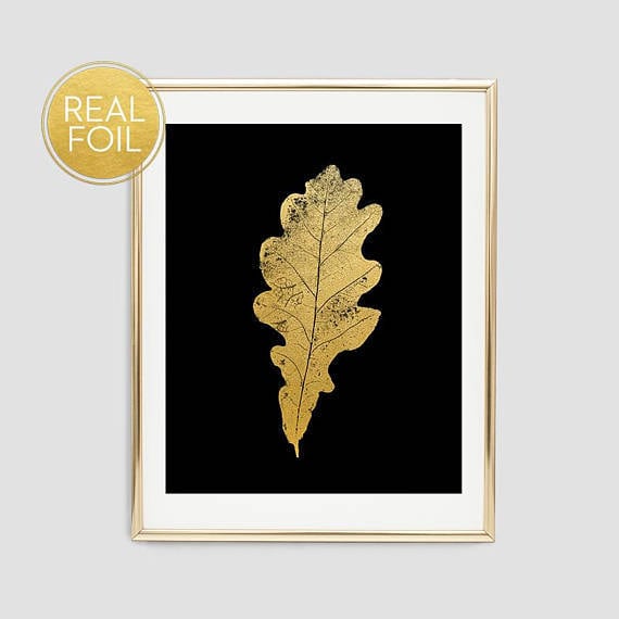 Gold Foil Oak Leaf Wall Art, Botanical Print, Gold Leaf, Real Gold ...