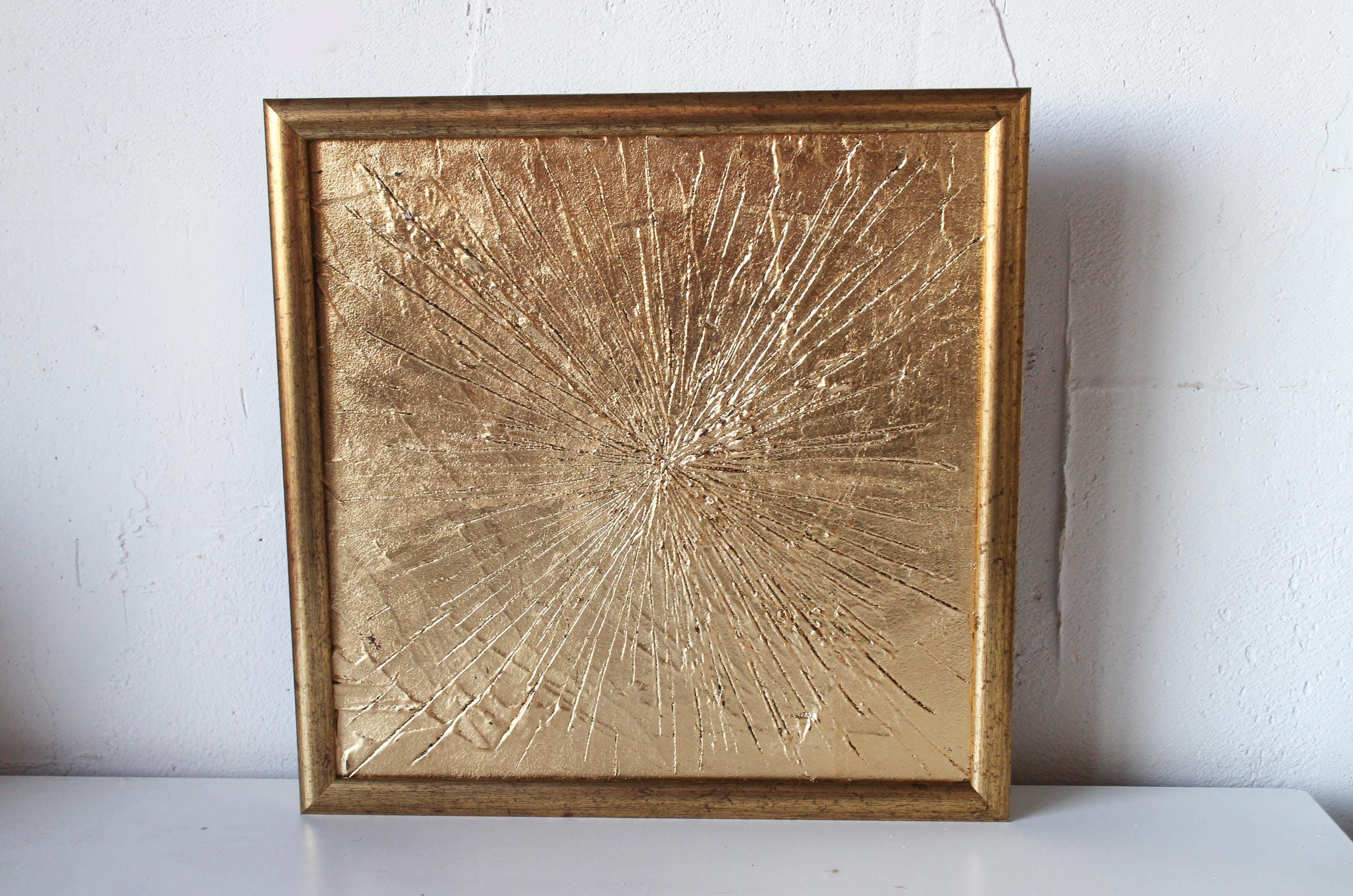 Gold Leaf Art Abstract 12x12 framed painting Large Abstract Paintin...