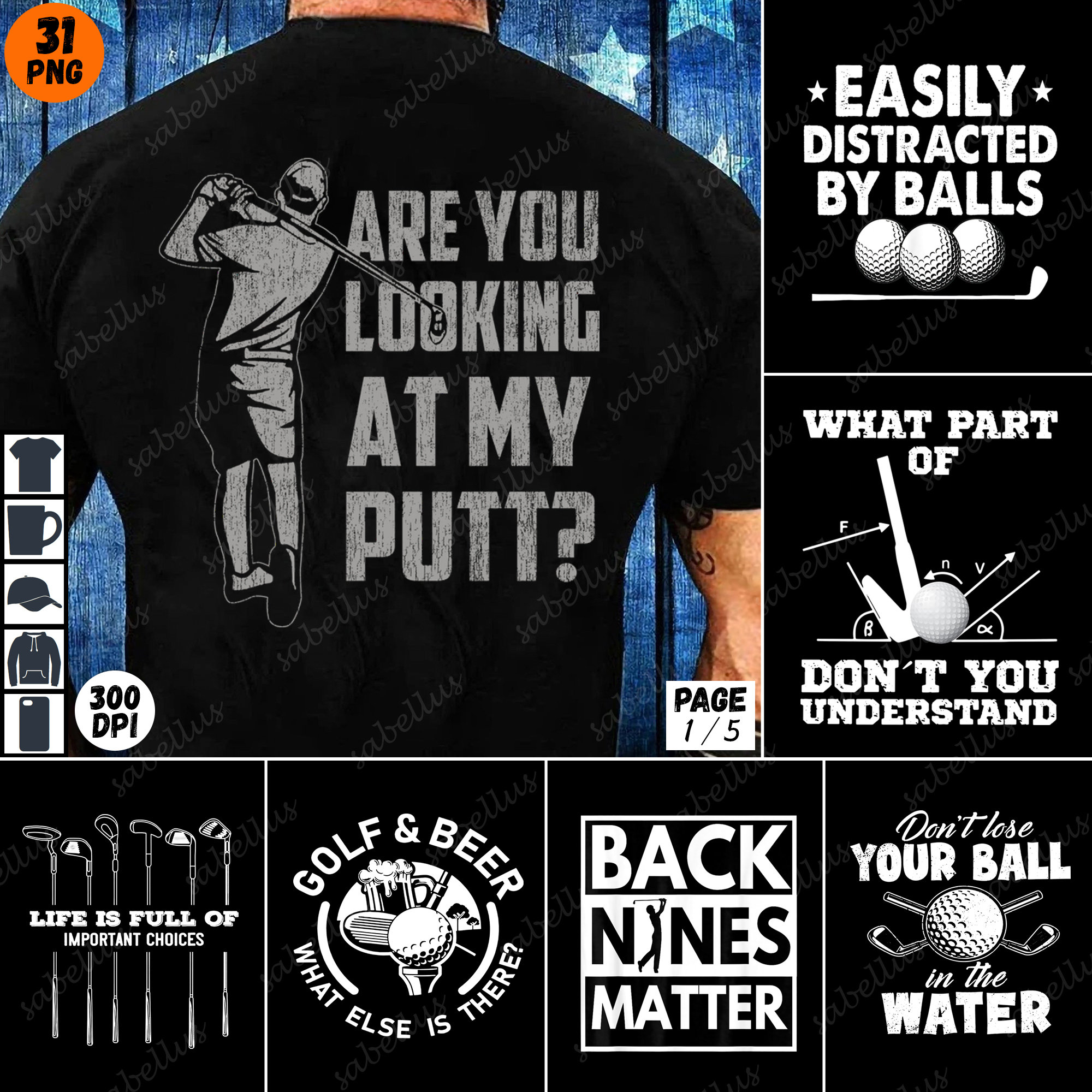 Golf PNG Bundle Sublimation Design. PLEASE NOTE: This is a DIGITAL download; no physical items will ...