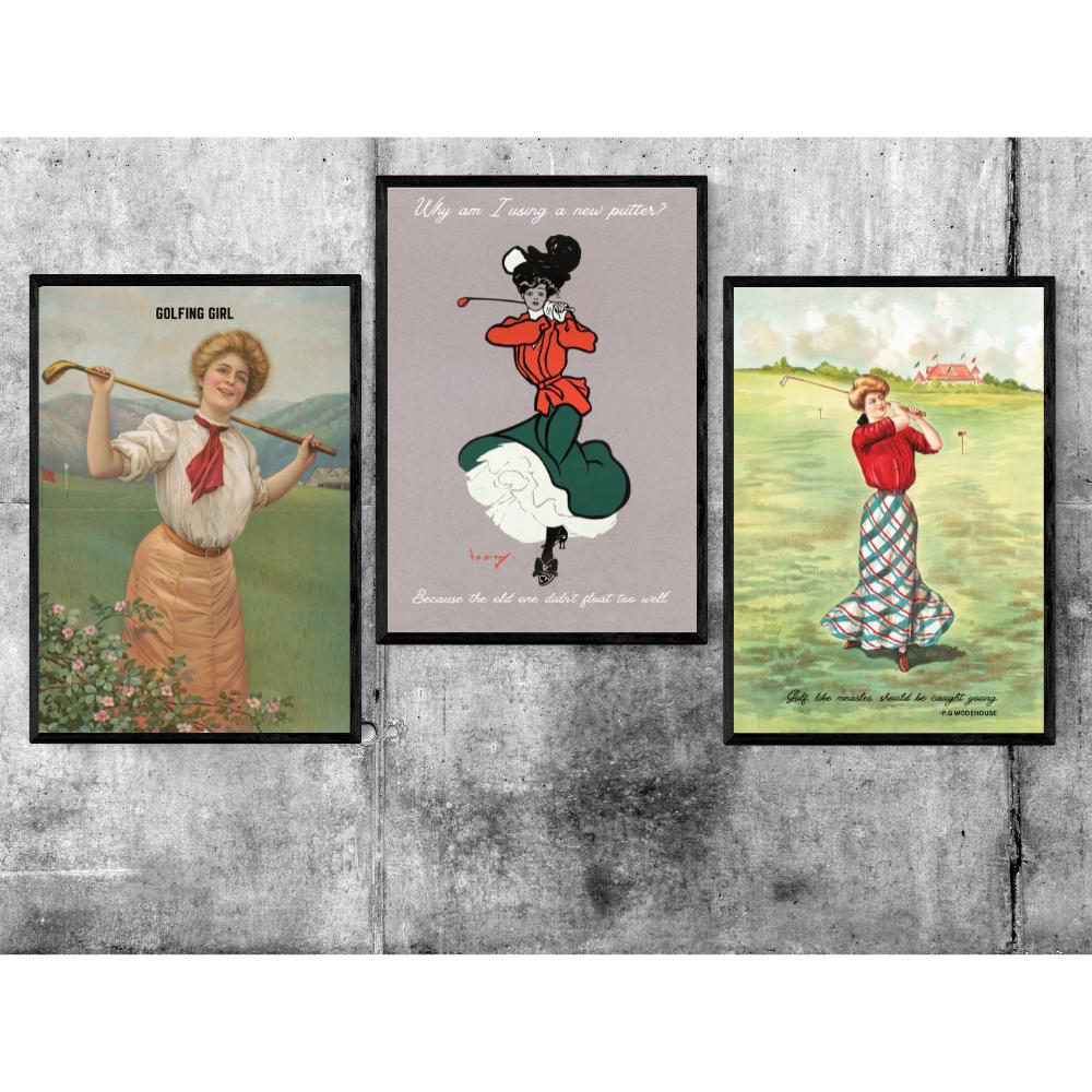 3 Vintage Golf Prints Ladies Golf Gifts for Golf Girl Women Golfers...