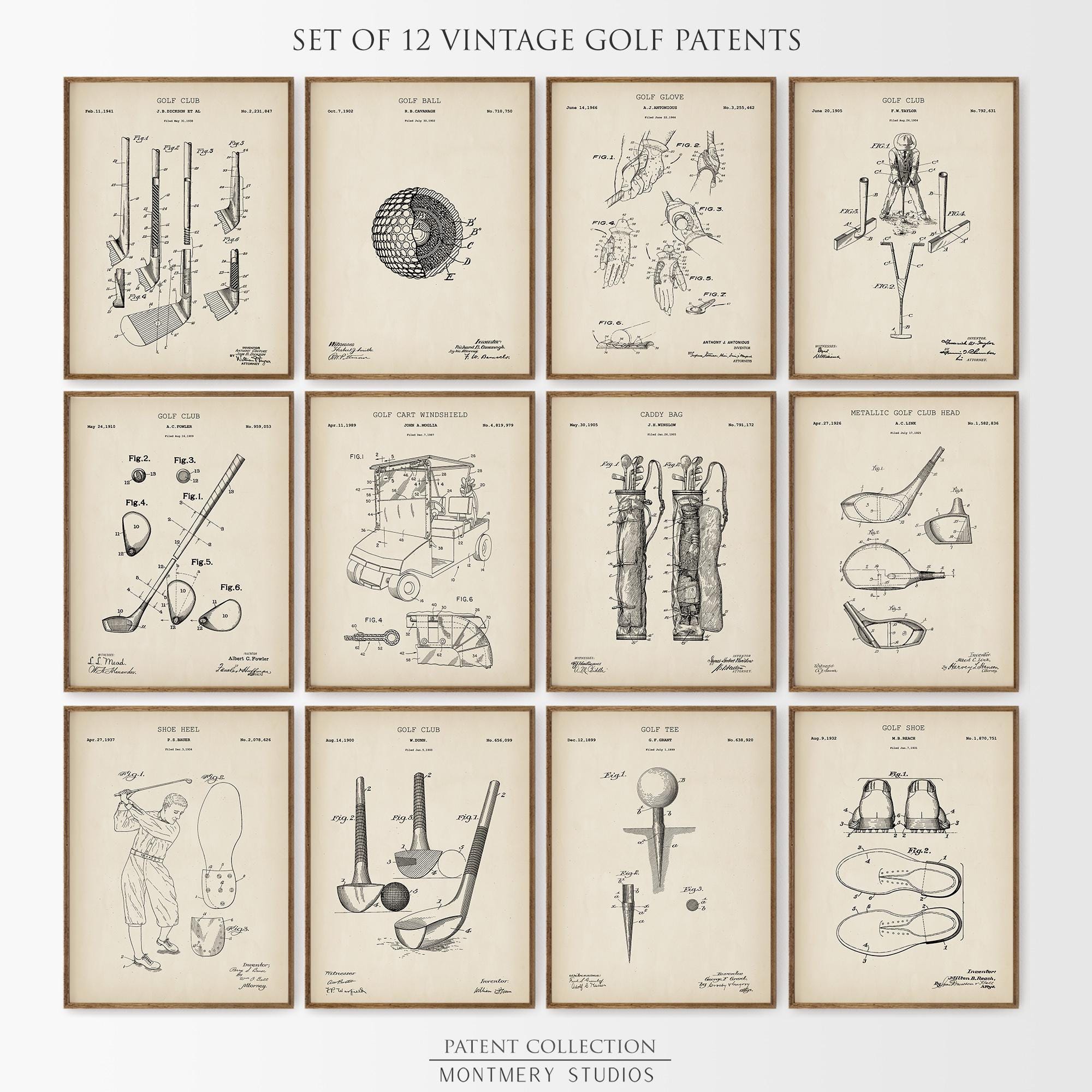 Golf Patent Print Set of 12, Vintage Golf Wall Art, Man Cave Decor,...