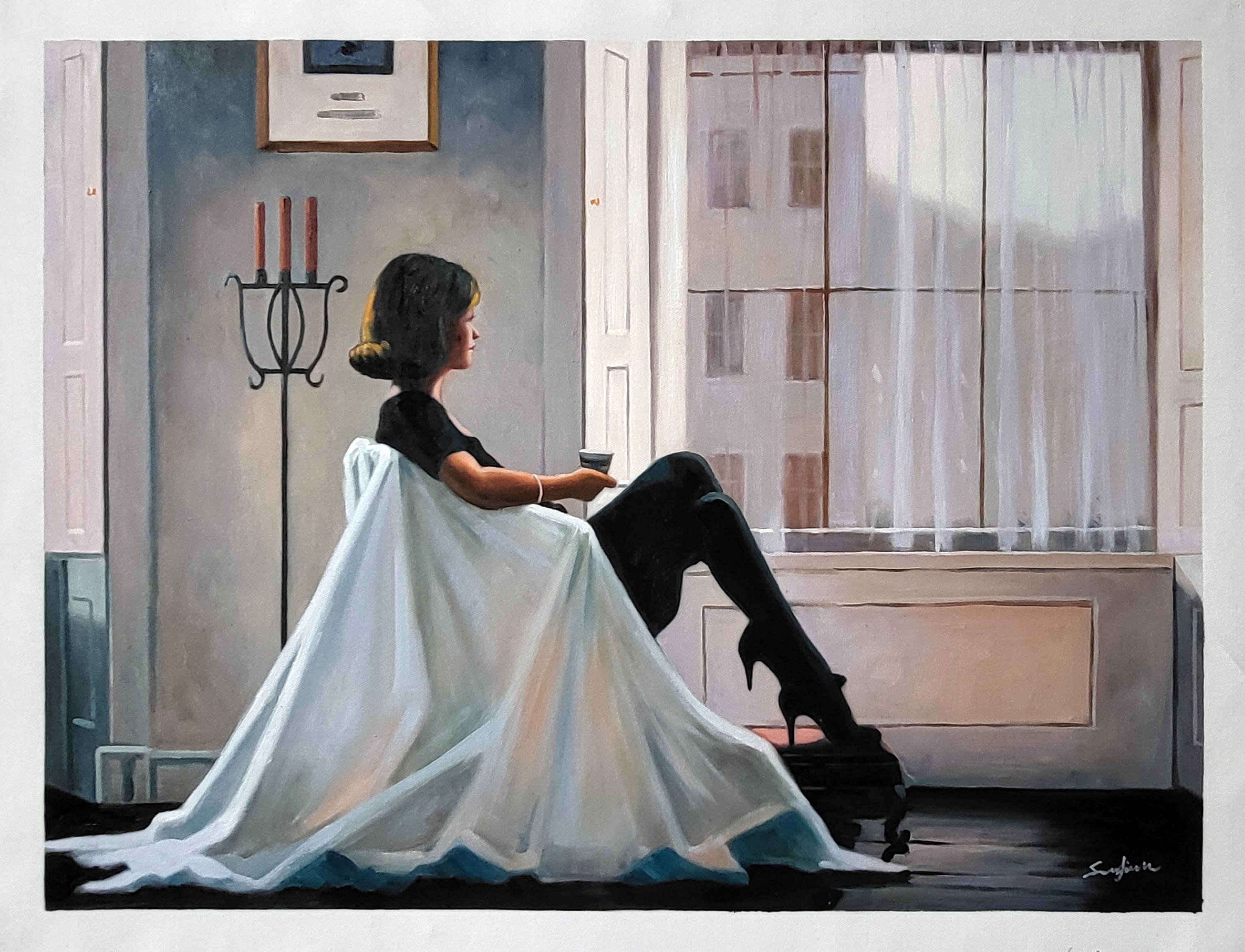 JV,In Thoughts of You 60 x 80 cm HANDMADE Oil Painting on canvas Ha...