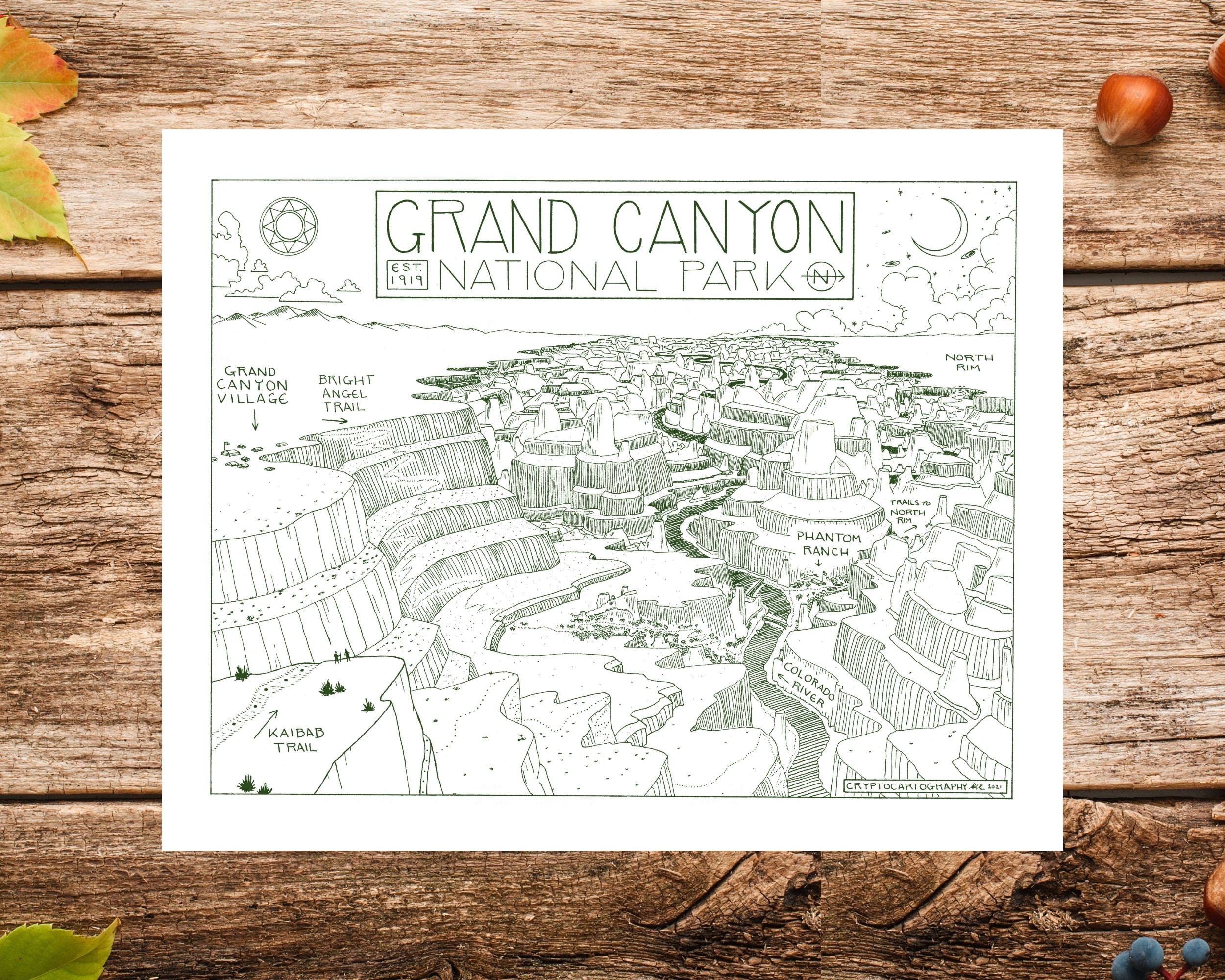 Welcome to Grand Canyon National Park. This is a high-quality art print of a handmade map which is h...