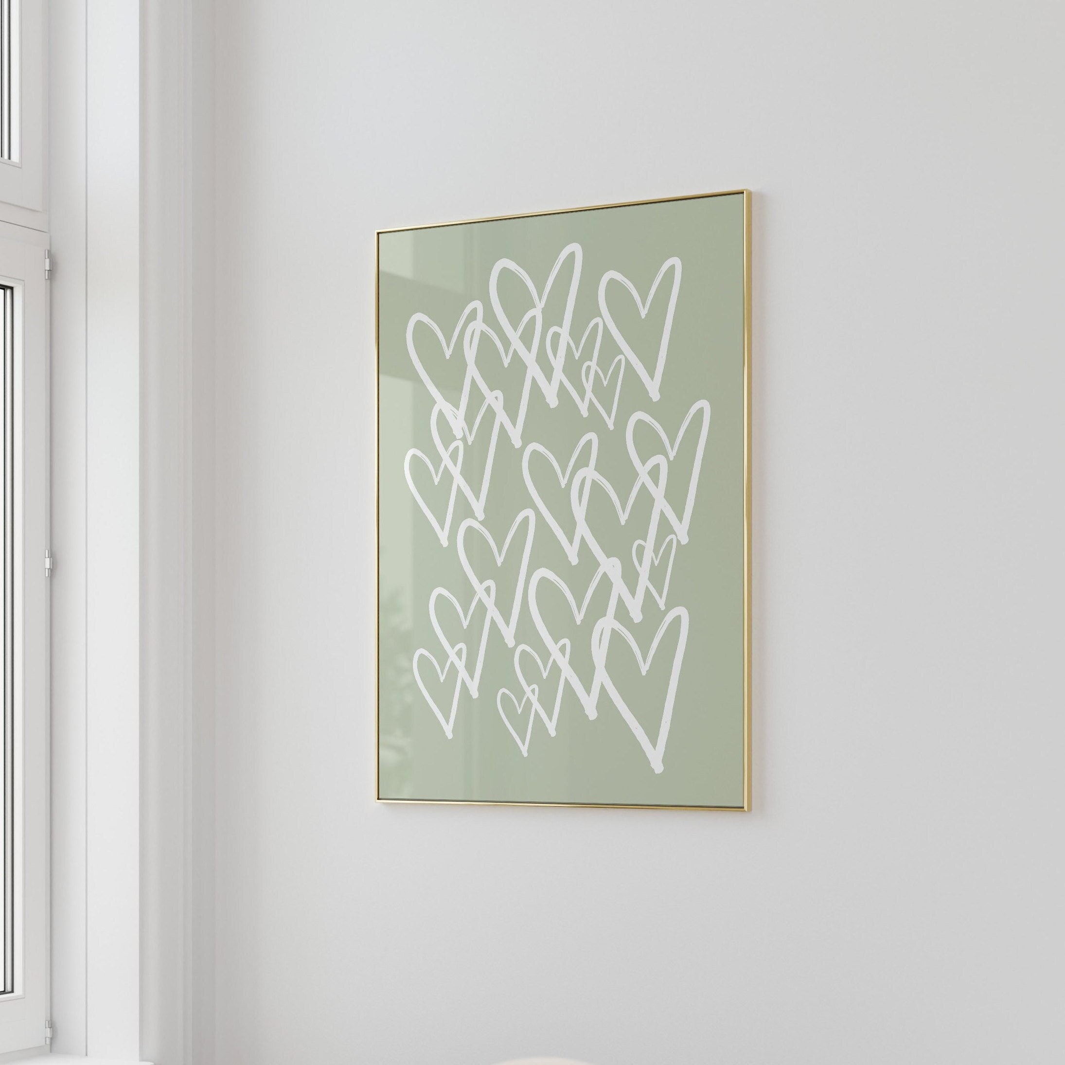 Sage Green Wall Art Heart Wall Art Trendy Wall Art Green Prints Aes...