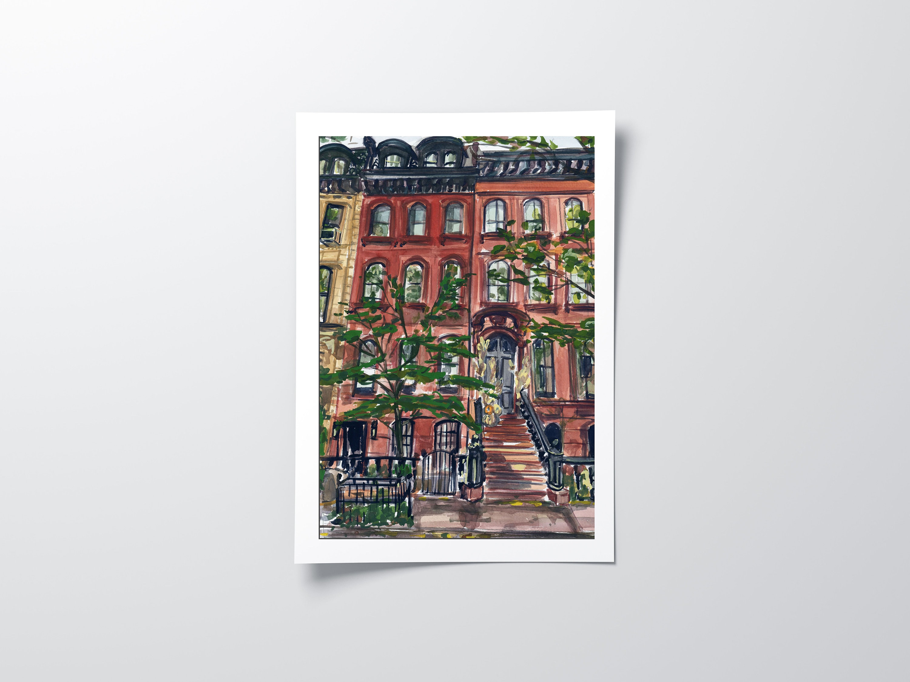 Description: In this exquisite painting, the timeless beauty of a classic NYC brownstone in the Uppe...