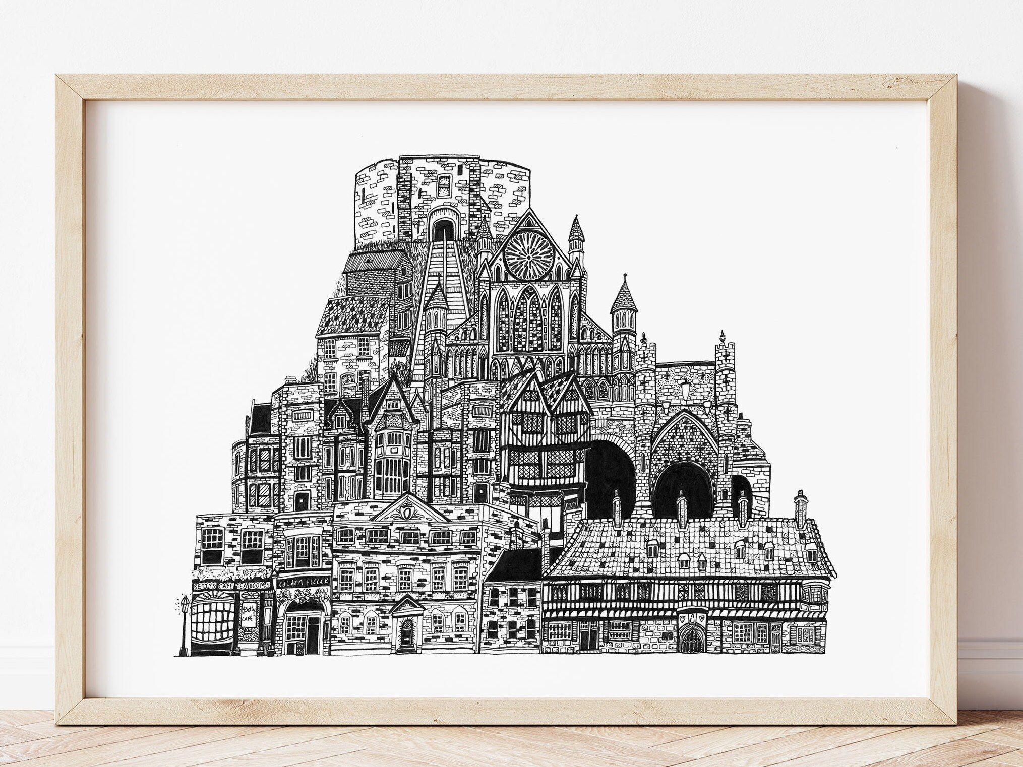 "A colourful illustrated skyline of York, showcasing the beautiful landmarks of the city. Showc...