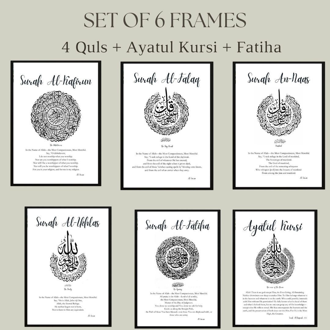 A4 4 Quls Frames Ayatul Kursi, Islamic Home Decor, Islamic Wall Art...