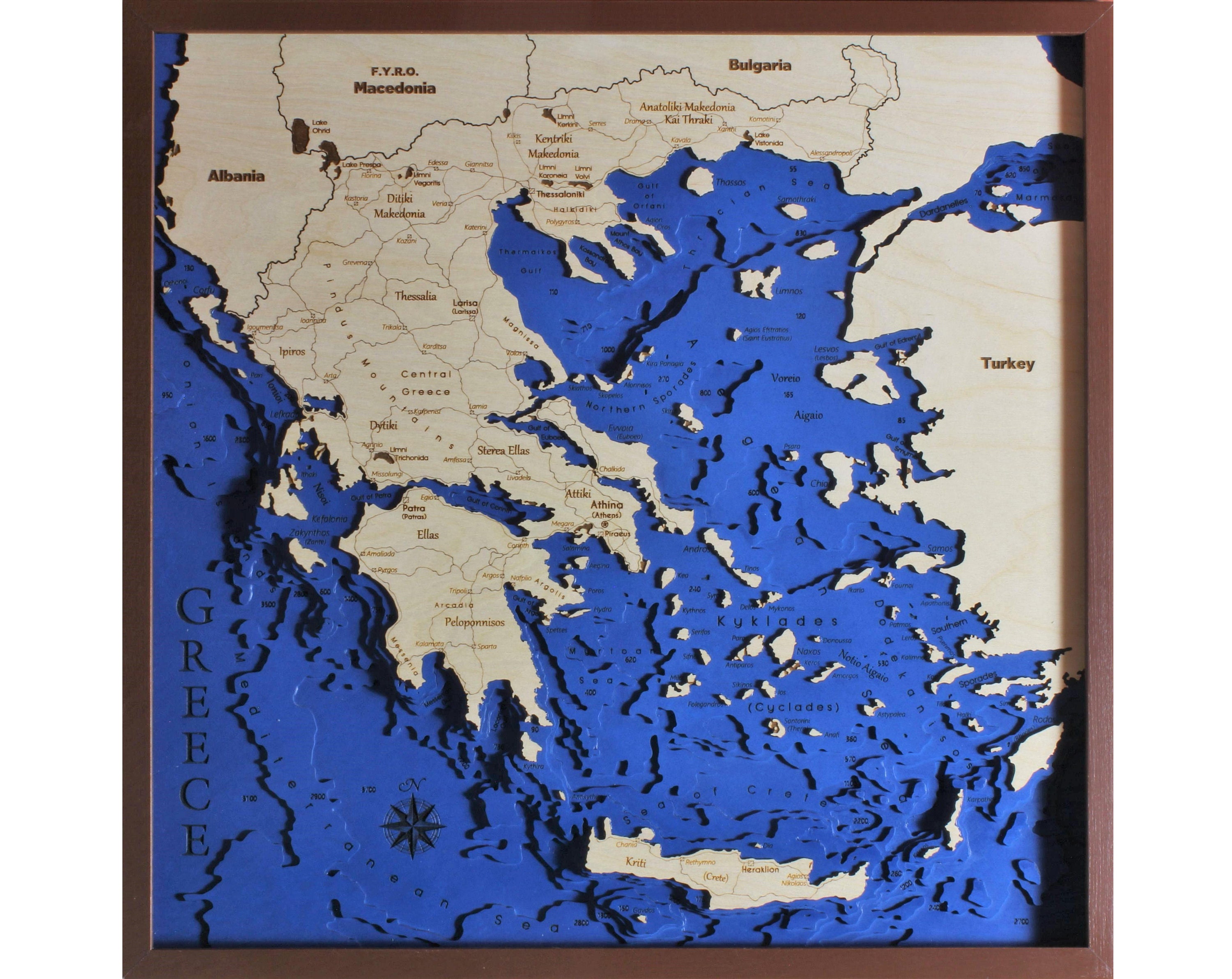 Greece Greece Map 3D | 60 x 60 cm | 23 x 23 inches | Wooden Map Cha...