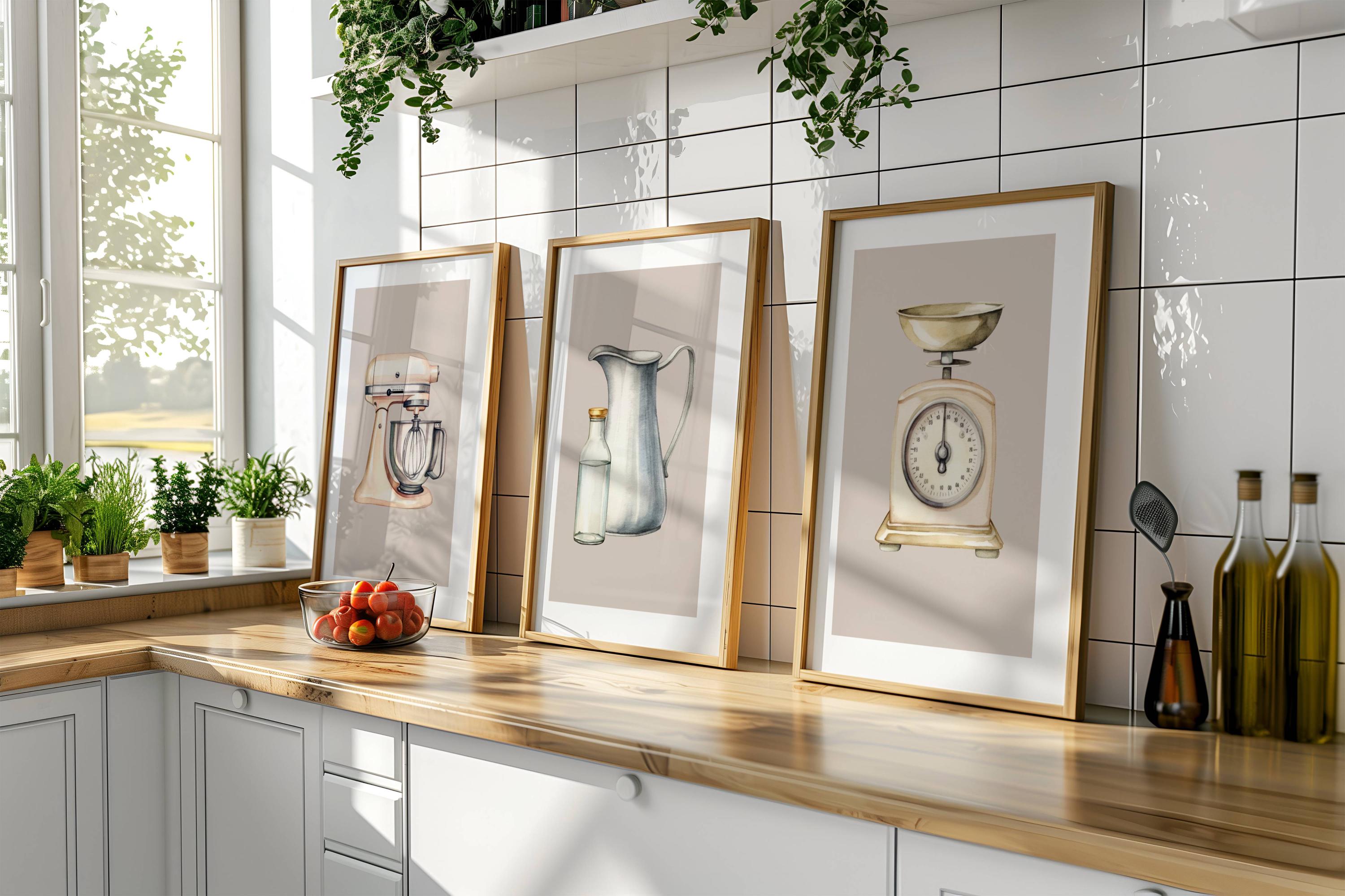 Kitchen Prints Set of 3 Kitchen Wall Art Beige Kitchen Farmhouse Co...