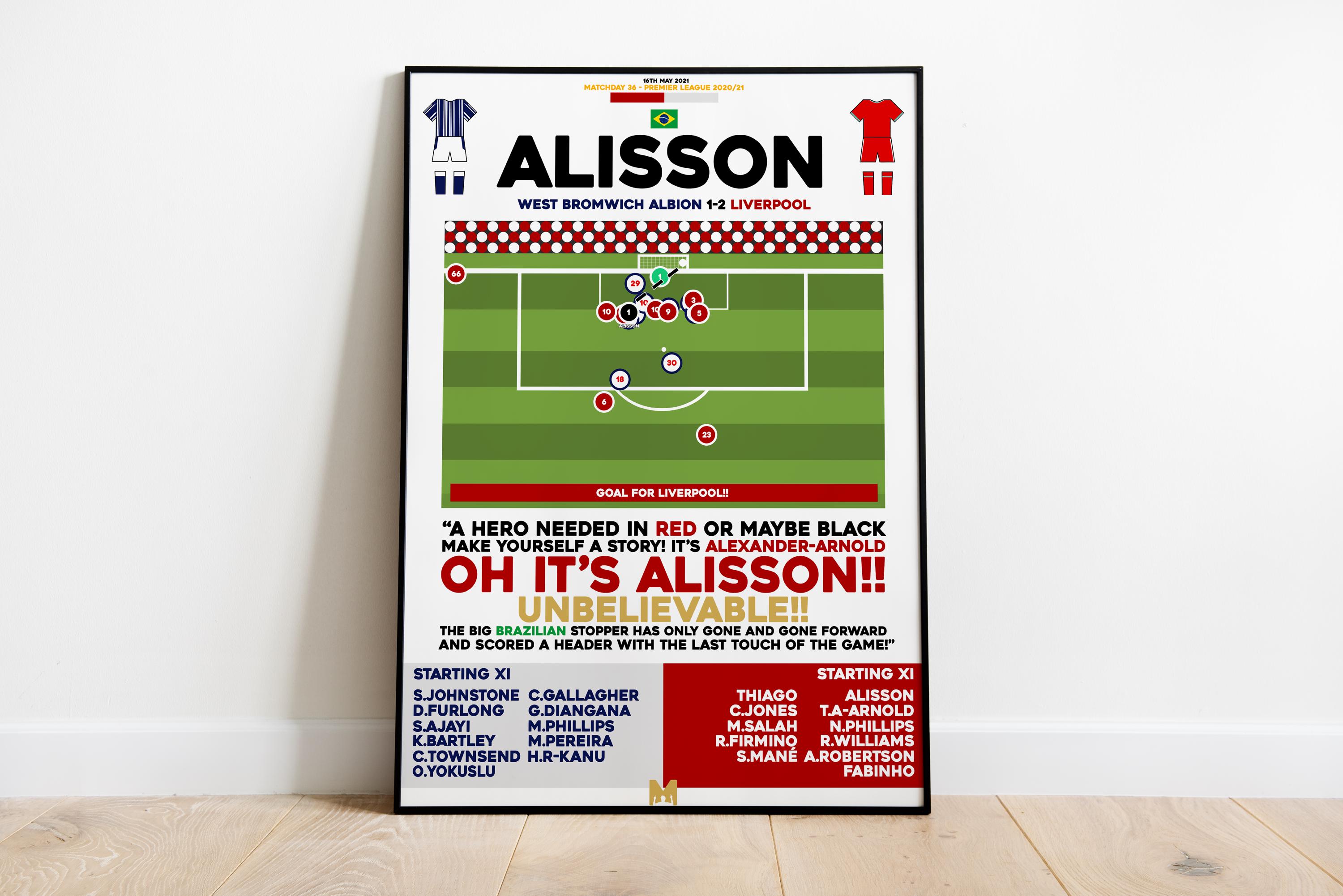 Alisson v West Bromwich Albion Print, Liverpool Poster, Football Wa...