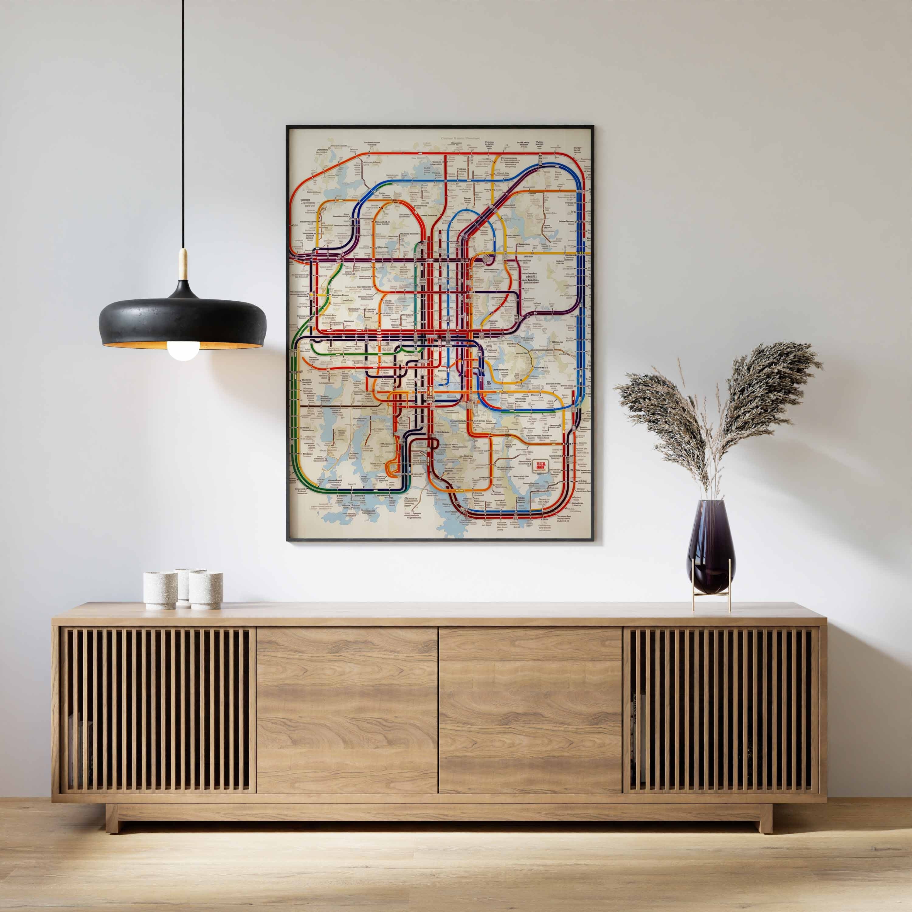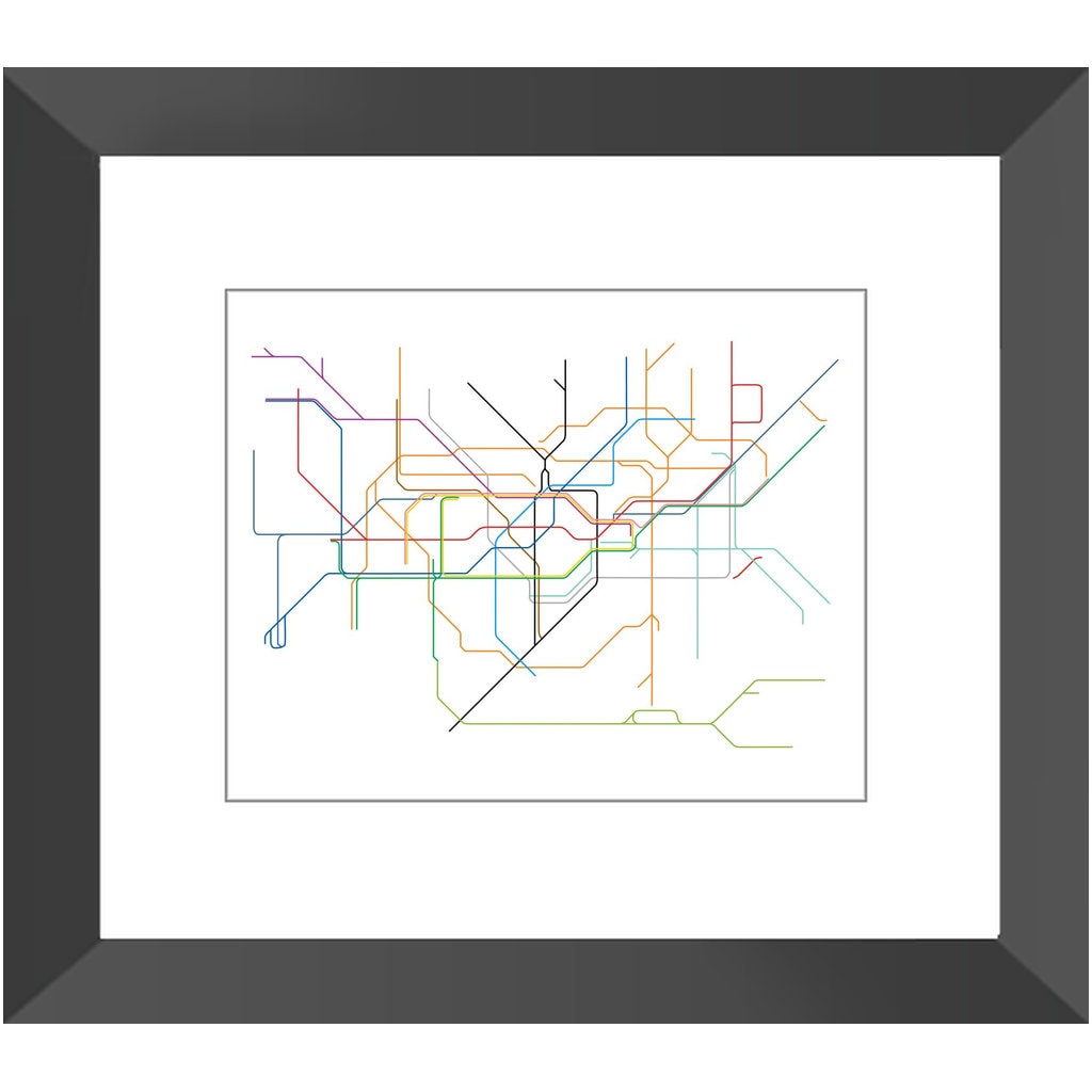 Modern line art interpretation of a city subway map. Each map is hand drawn on the computer to emula...