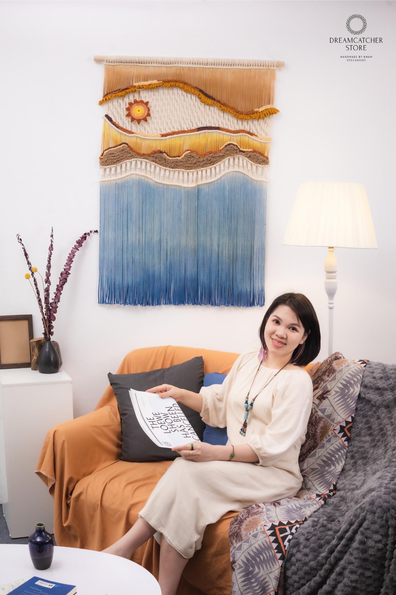 Handmade Macrame Wall Hanging: Ombré Ocean Sunset Fiber Art