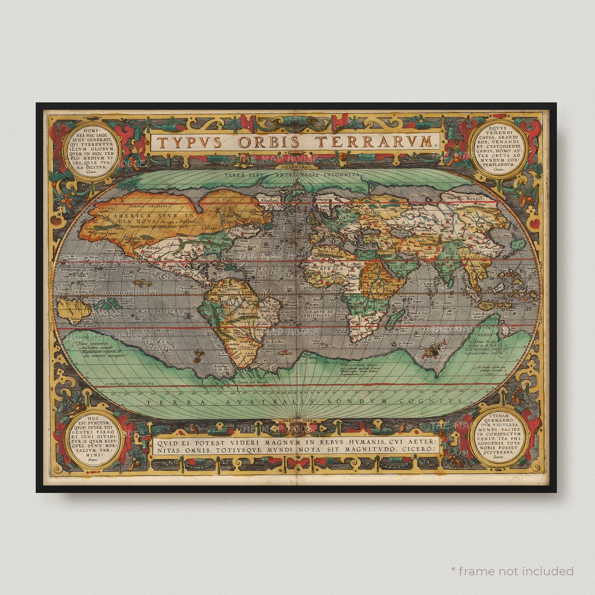 "1579 Map of the World This antique map print is a high-quality reproduction of the original ar...
