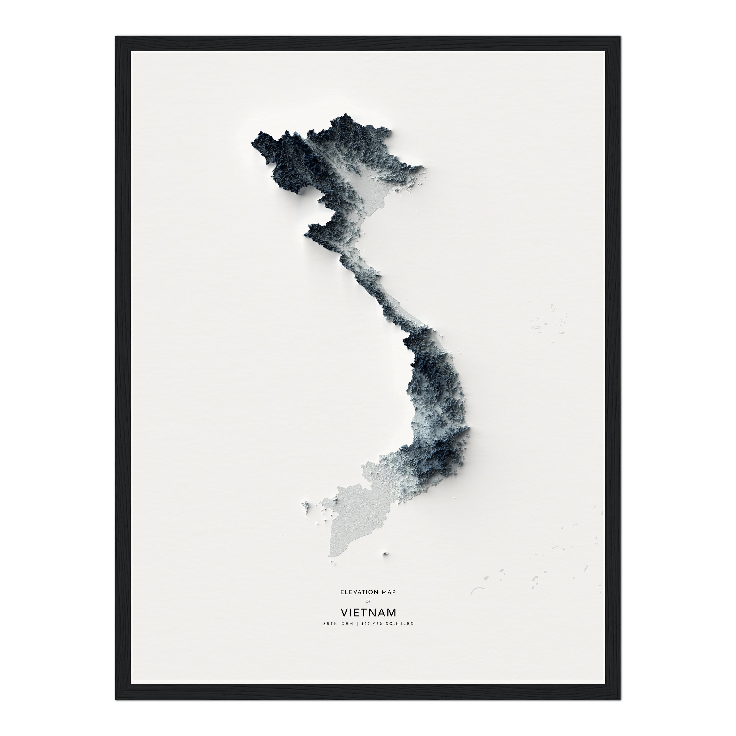 Discover the captivating beauty of Vietnam's diverse terrain with this exquisite elevation map print...