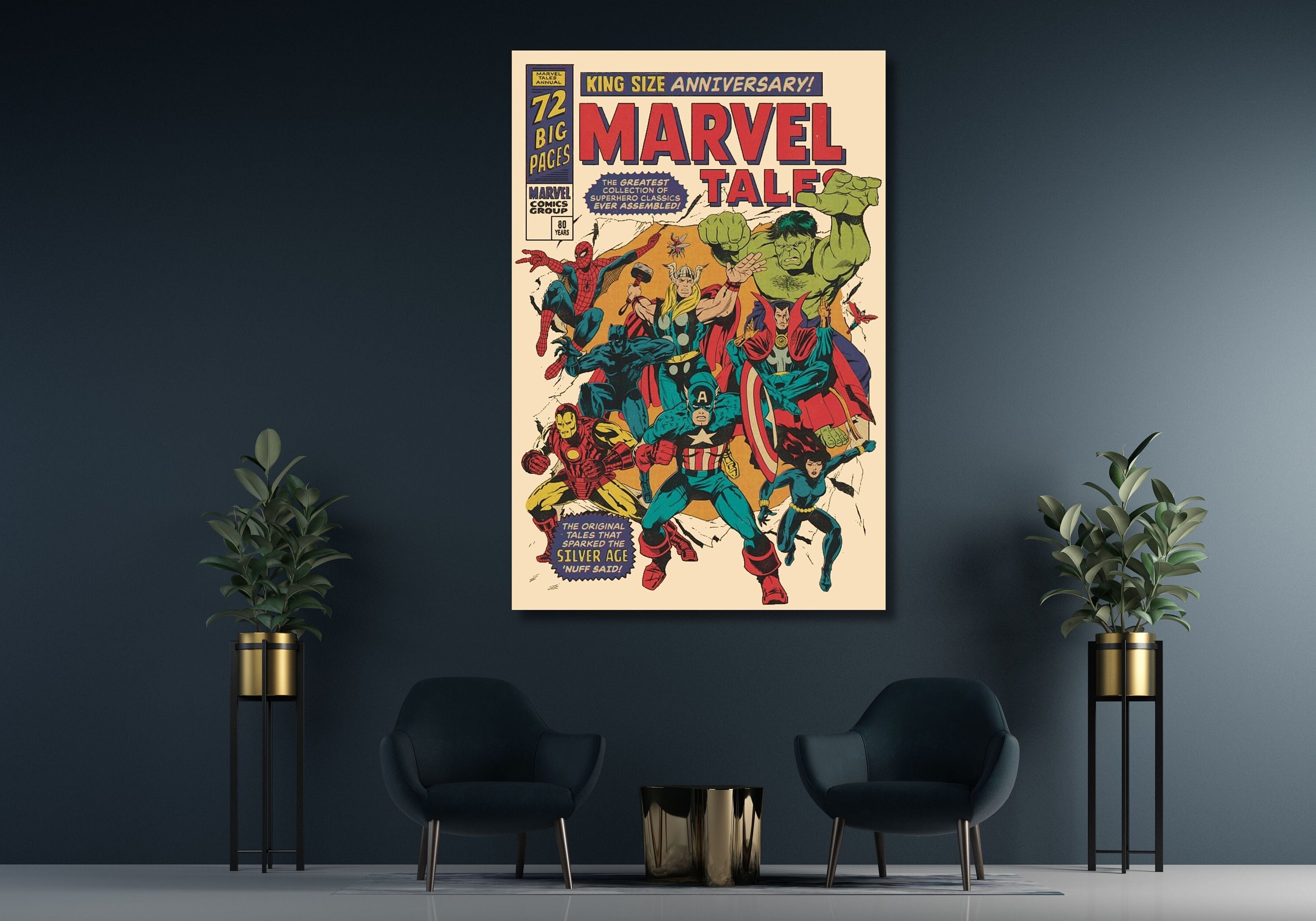 Avengers Comic Book Canvas Poster, Marvel Superheroes Wall Art