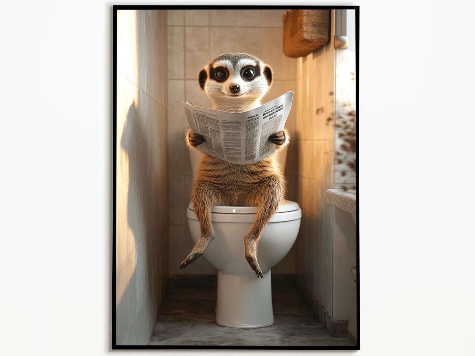 Meerkat on the toilet, bathroom pictures, funny animal picture, gif...