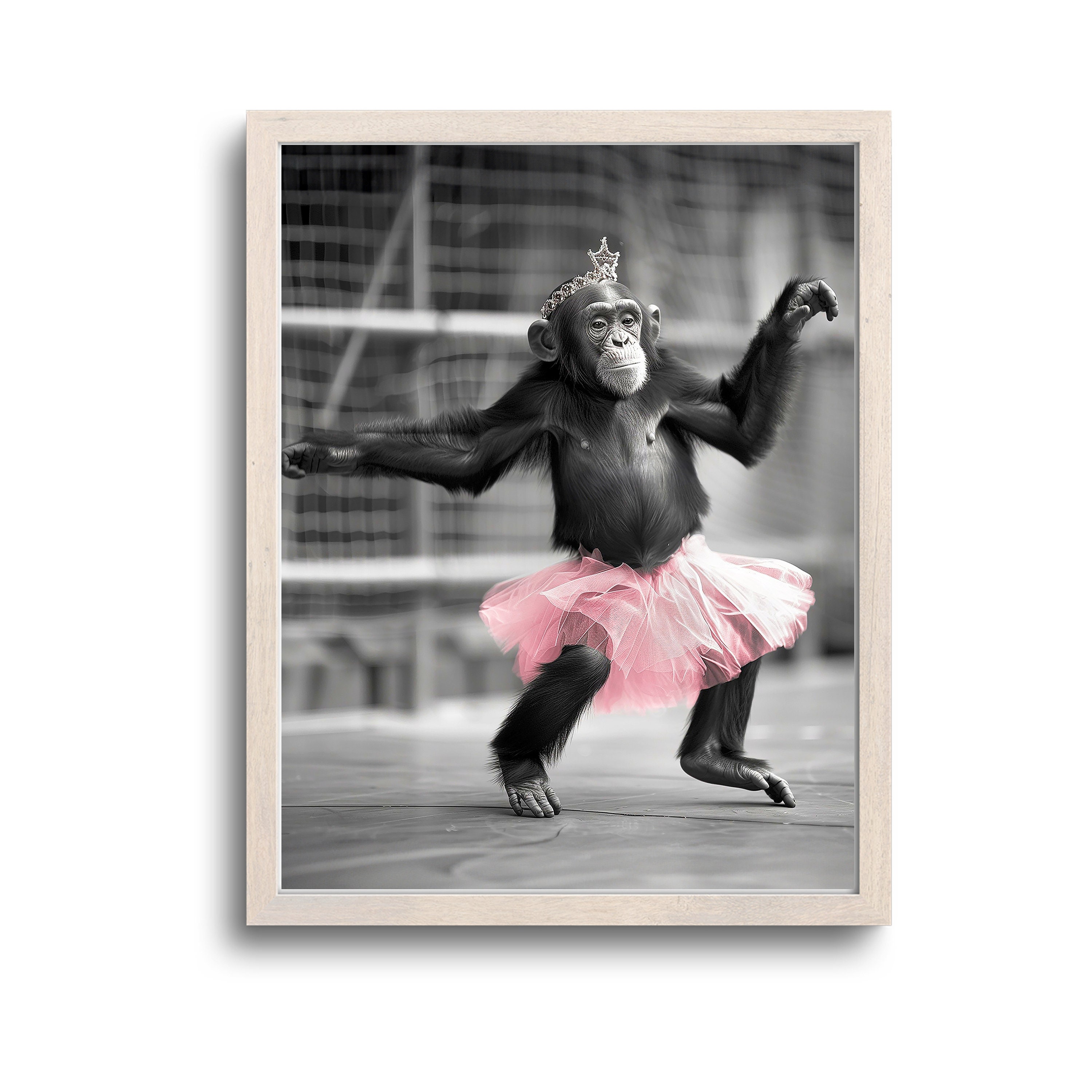 "Add a touch of playful elegance to your living space with our \"Monkey in a Tutu\" p...