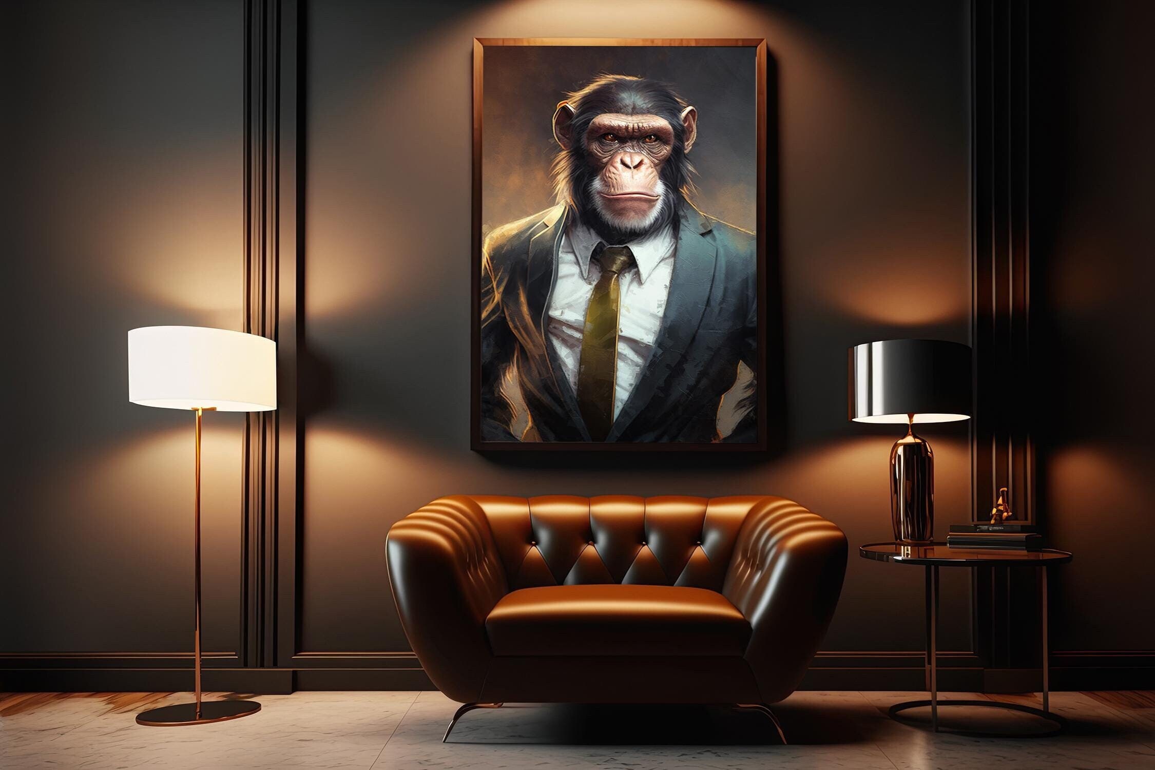 "ABOUT ART: \"Unleash Your Inner Maverick: The Businessman Monkey Art Print\"Step int...