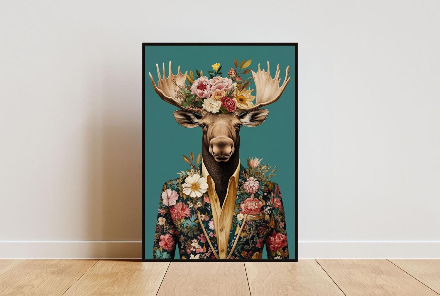 Moose In Suit Poster, Moose Portrait, Moose Oil Painting, Animal He...