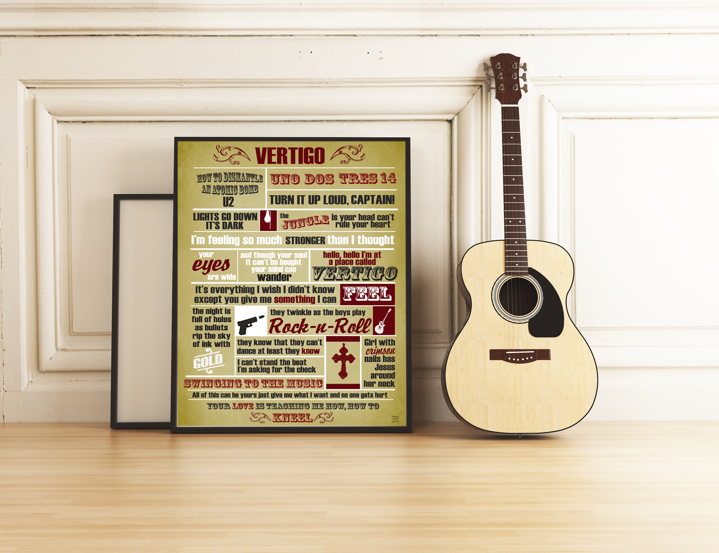 Vertigo song art print, U2 wall art, Music art print, Music wall ar...