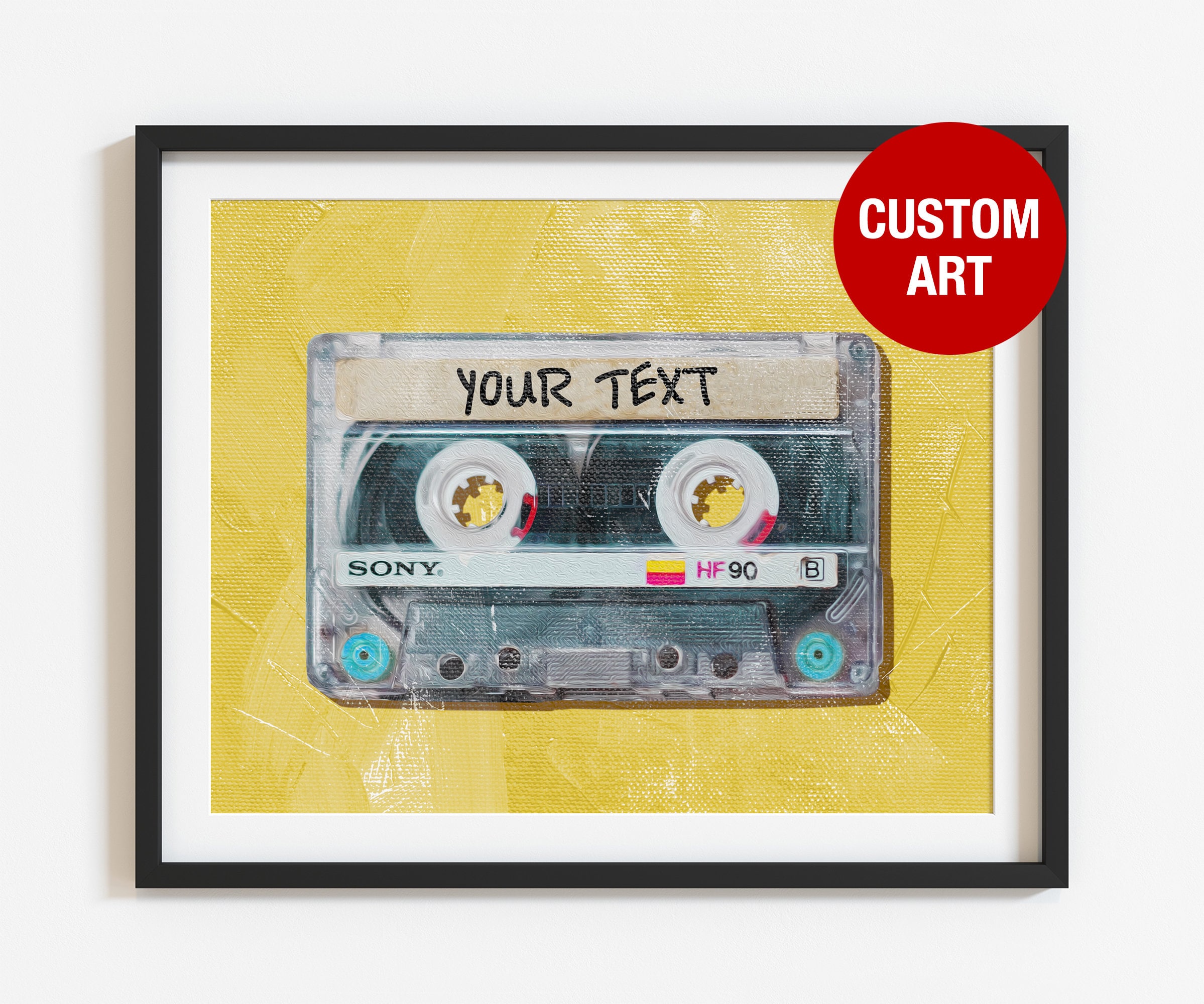 Custom cassette tape music wall art, old school prints, retro mix t...