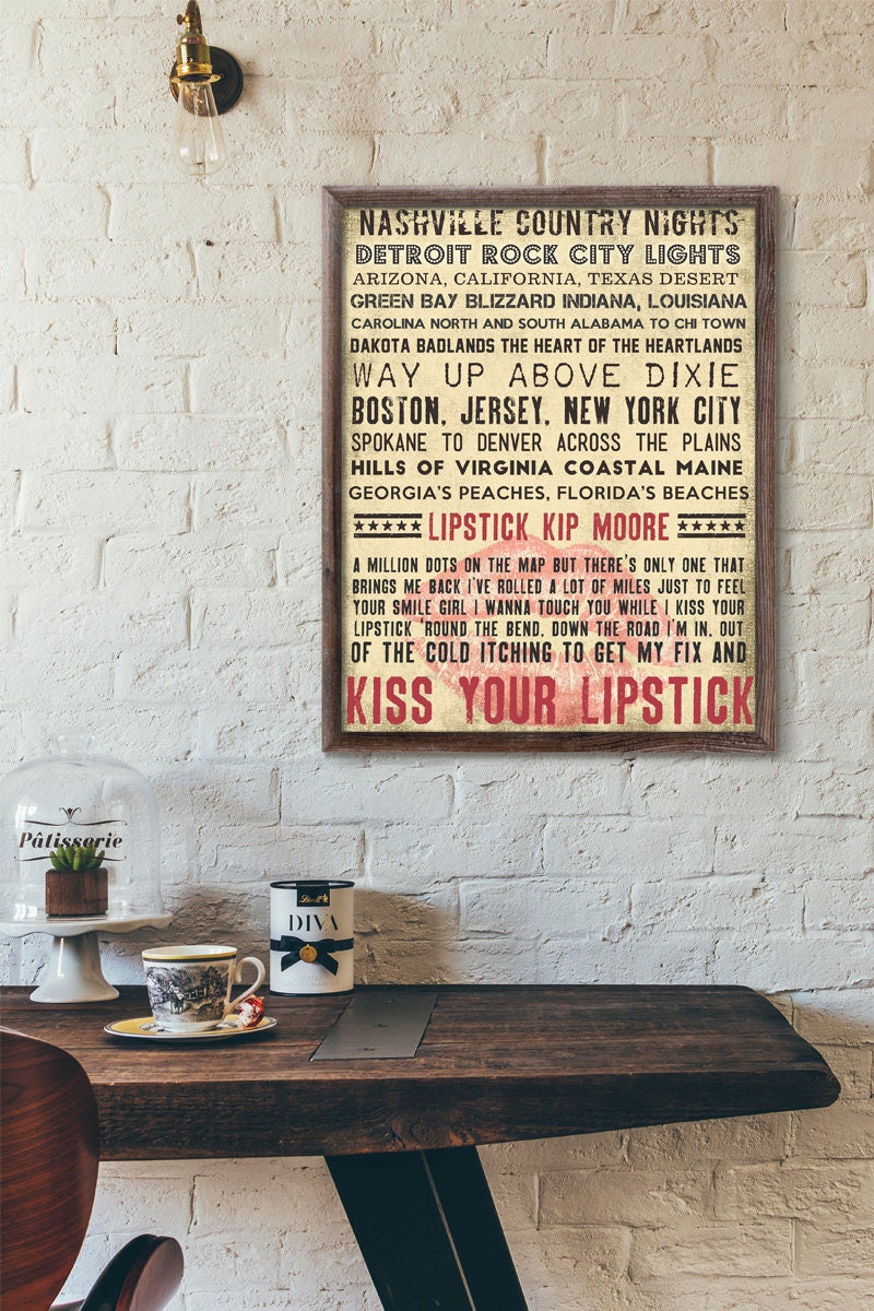 Lipstick song art print, Kip Moore fan gift, Country music wall art...