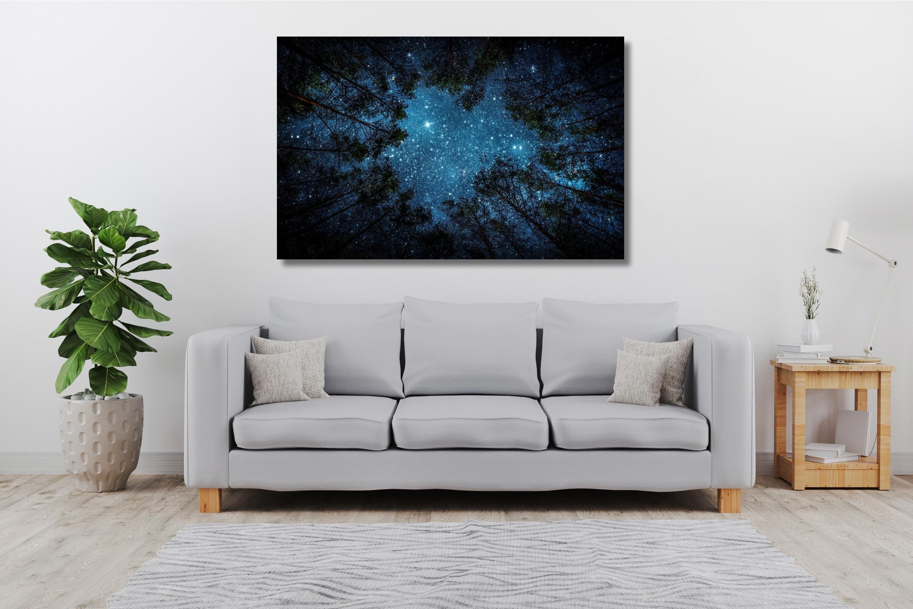 Forest Under the Stars Canvas Wall Decor,Starry Night Sky Through F...