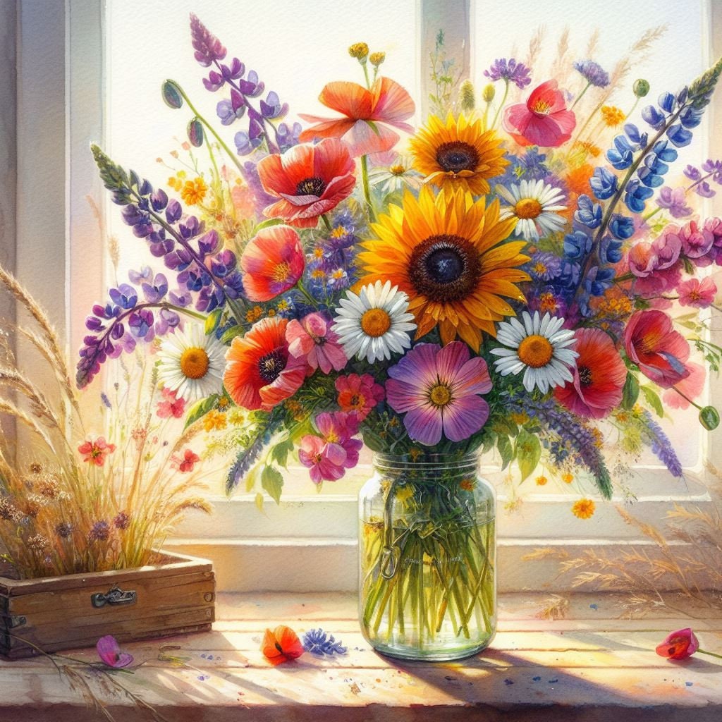 4 Wild flower bouquet in vase images Bing AI | 4 Bing AI images with a field flower bouquet on vase ...