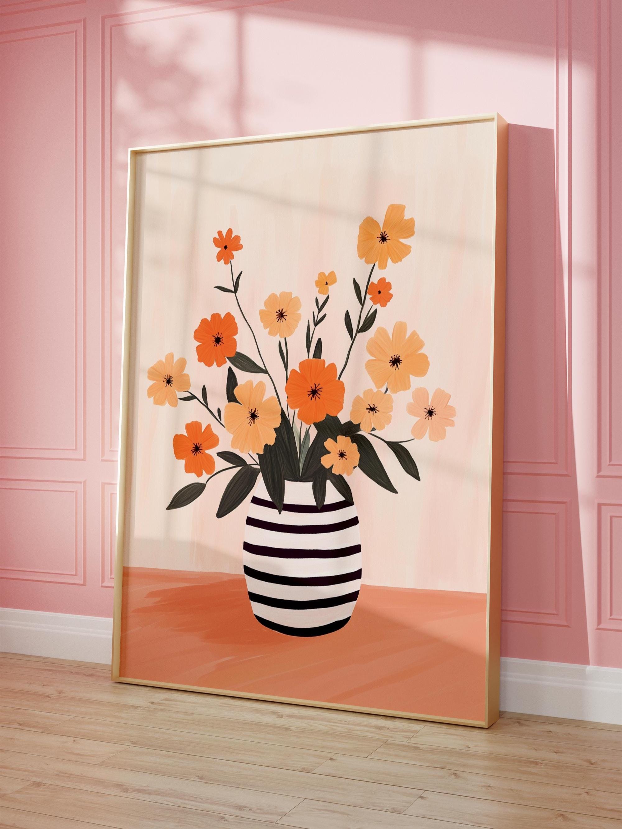 Abstract Flower Wall Art Stripe Vase Print Modern Home Decor Botani...