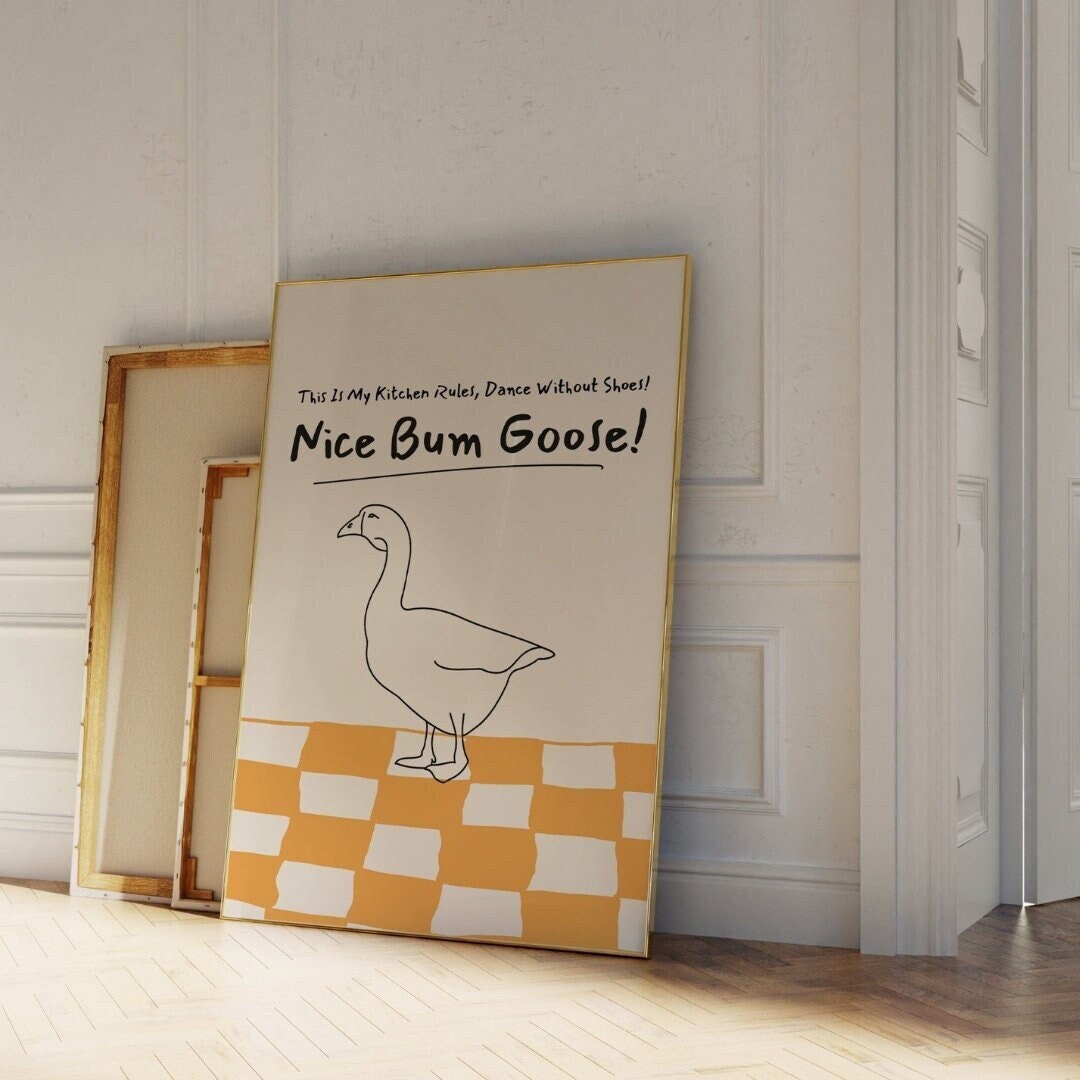 Nice Bum Wall Art, Goose Print Cheeky Sign Kitchen Wall Art, Funny ...