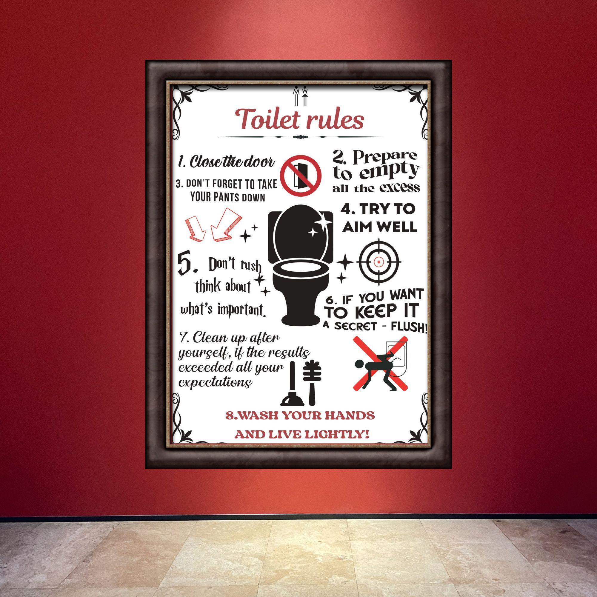 Toilet rules for home and office, Funny bathroom rules sign, Airbnb...