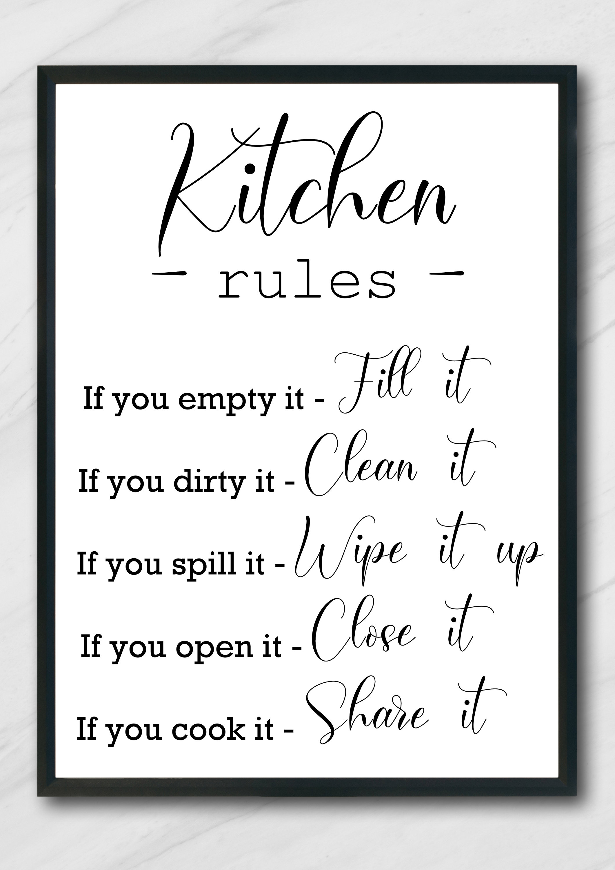 Kitchen Rules Wall Art, Kitchen Rules Printable, Kitchen Wall Decor...