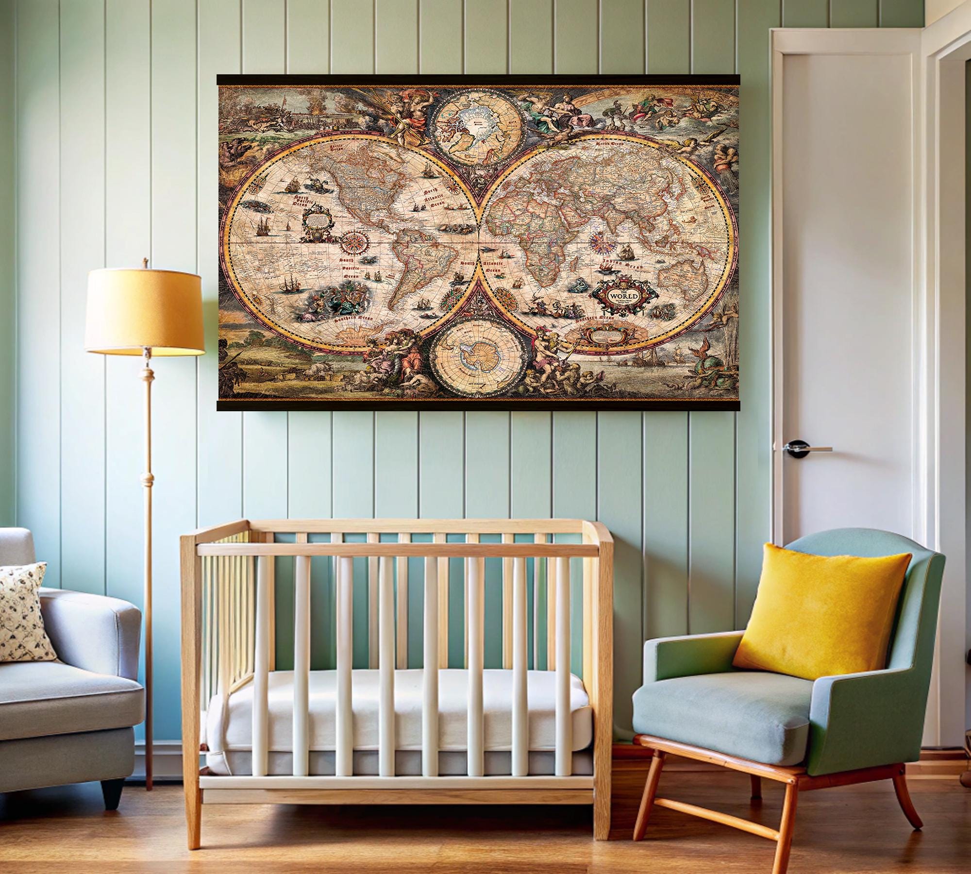 Antique Map Of The World Poster,Vintage World Map Print Wall Art,Hi...