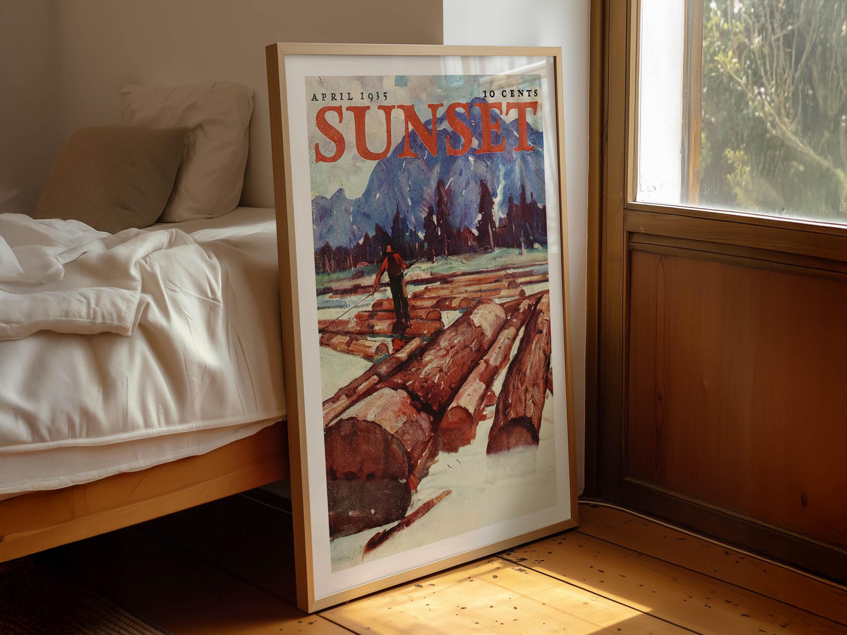 Log + Timber Print Retro Outdoors Art Gift for Home Cabin Tree Poster Nature Art Cabin Wall Decor Ou...