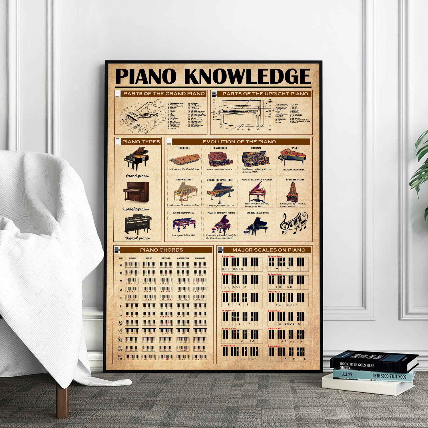 Piano Knowledge Poster, Piano Poster, Gift For Pianist, Music Decor...